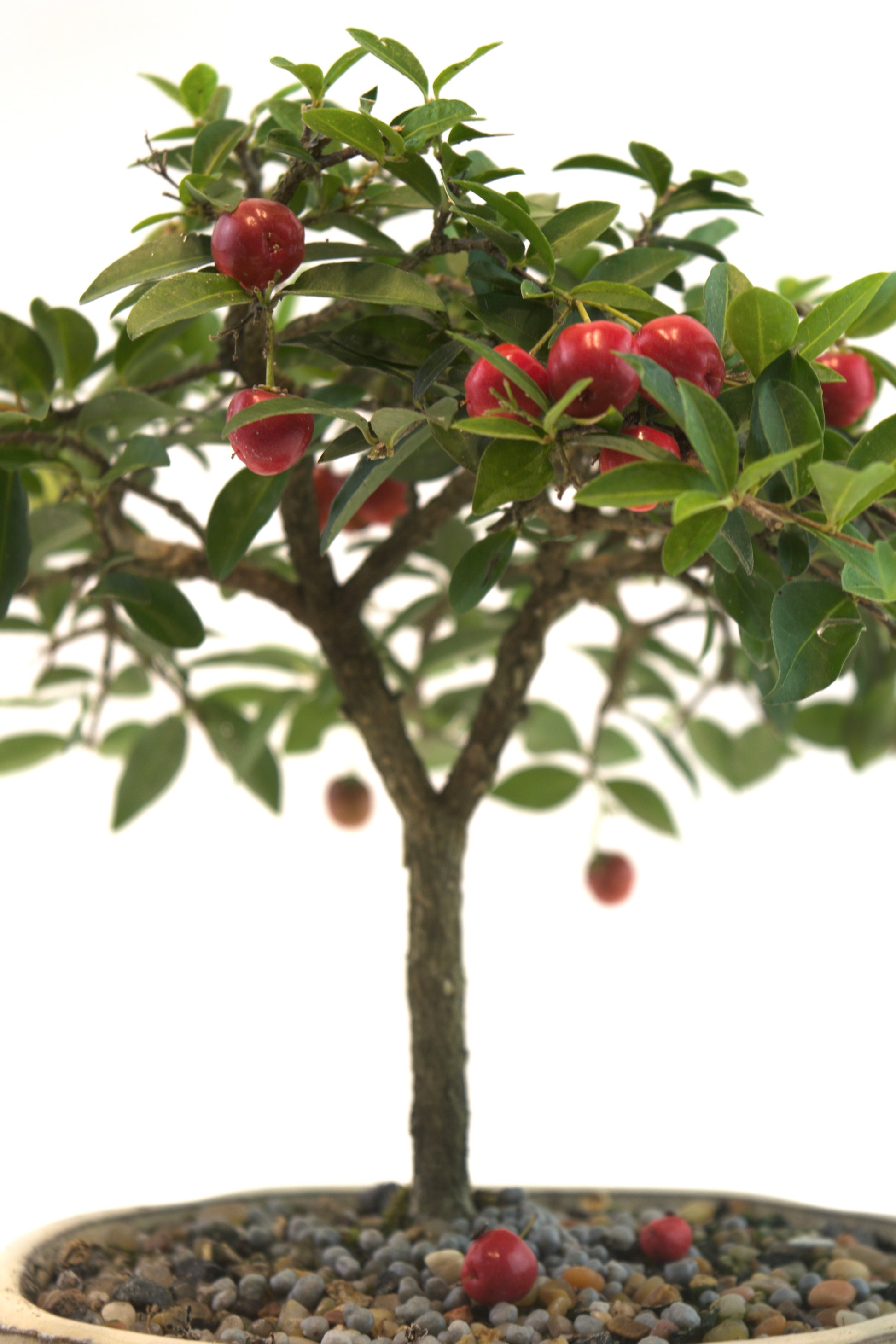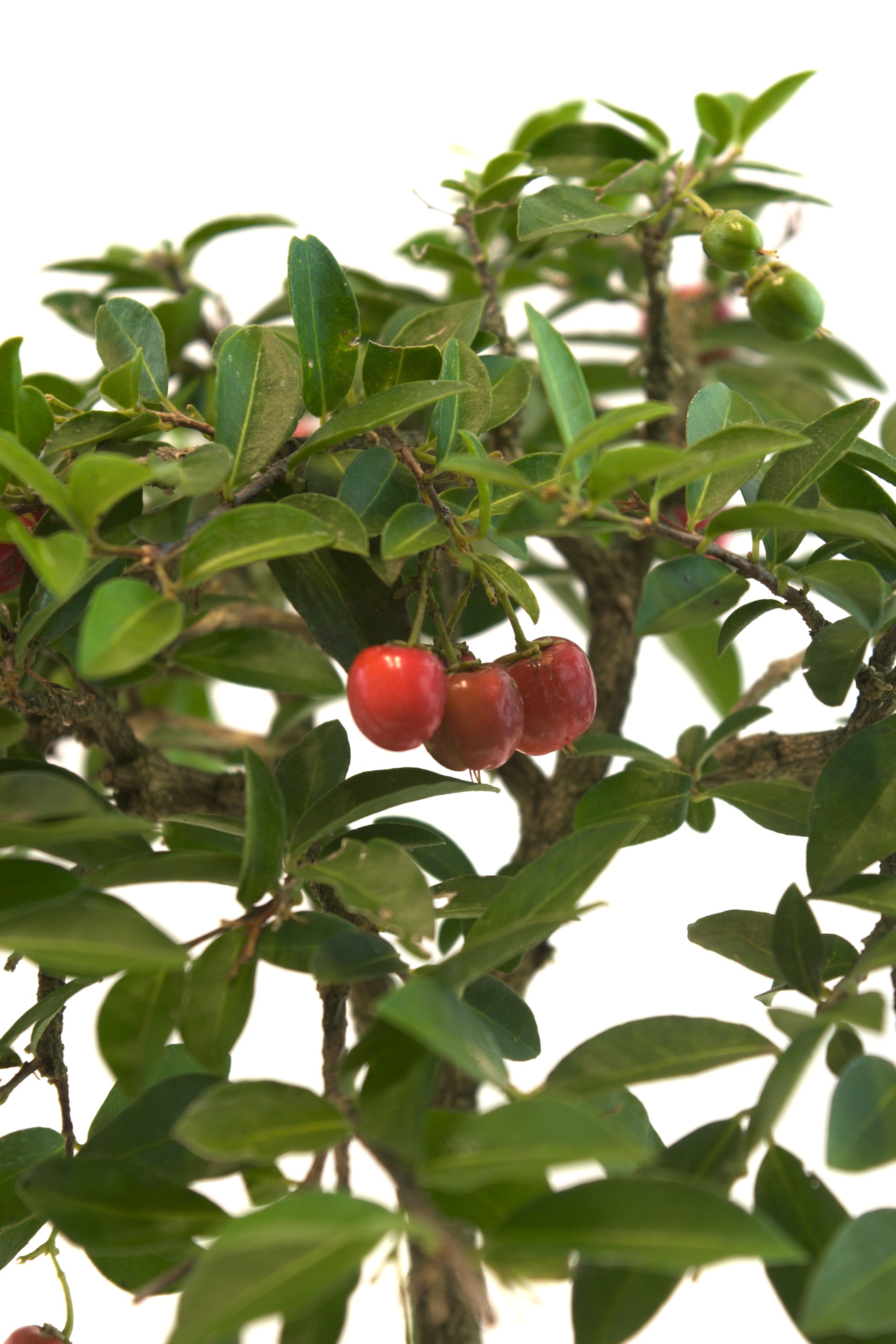 A beautiful tropical shrub or small tree, the Barbados Cherry (Malpighia punicifolia) is prized in bonsai for its graceful branching, glossy green foliage, and charming pink flowers that give way to bright red, edible cherries. Native to the Caribbean and Central America, this species grows in warm, humid regions and is a favorite among bonsai artists for its ornamental appeal and fruiting potential. Its compact size and rewarding growth habits make it suitable for both beginners and experienced collectors.