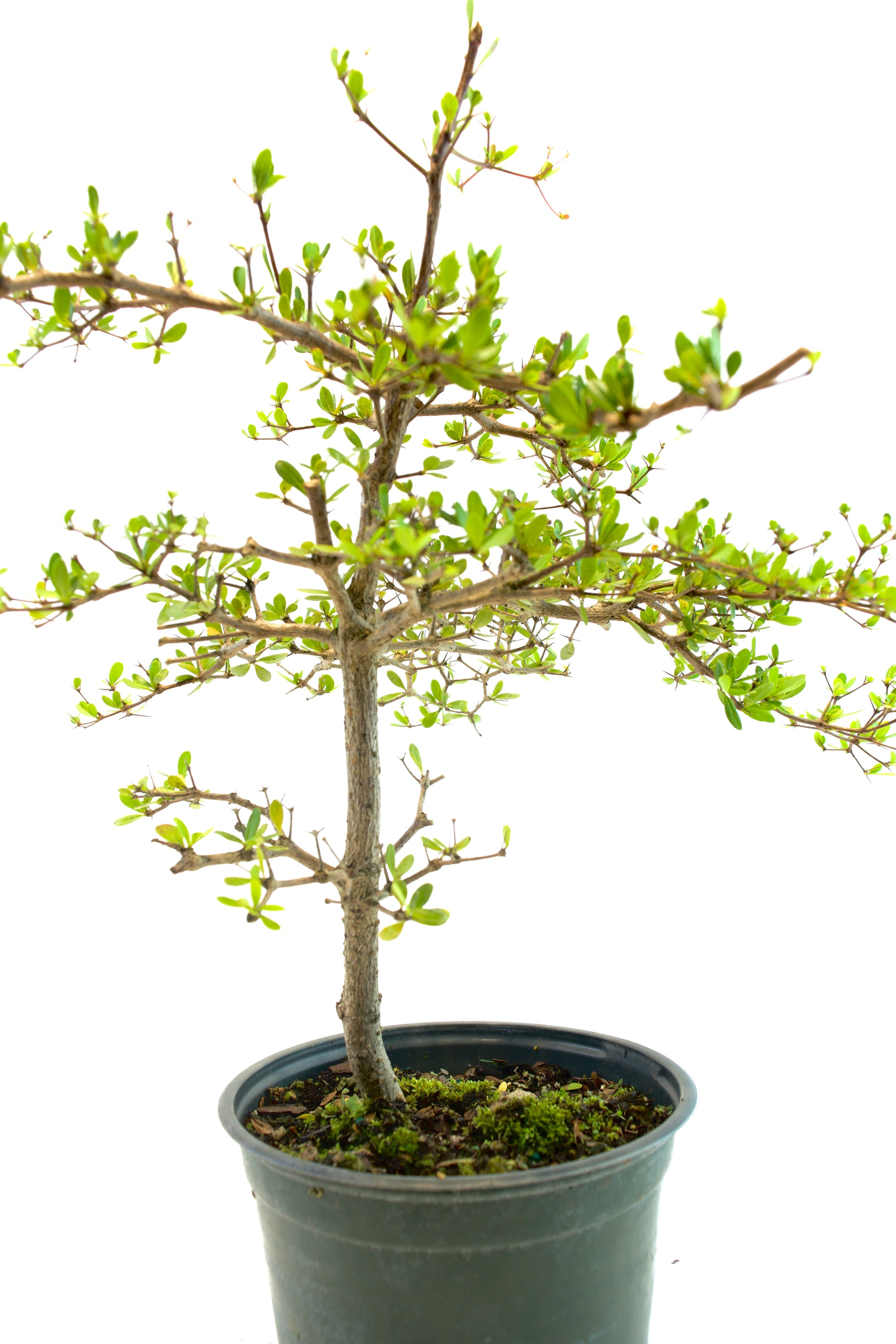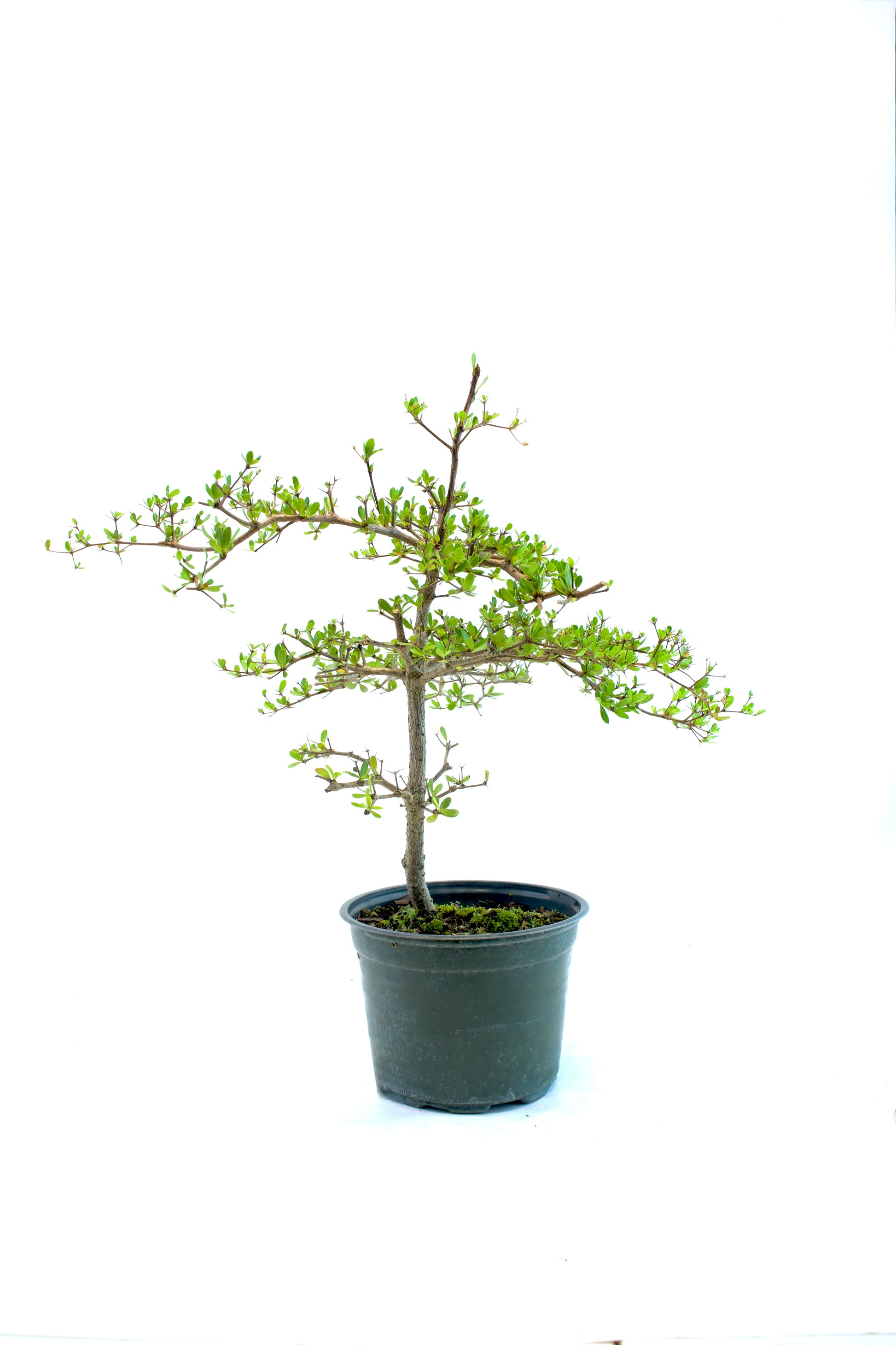 The Black Olive Bonsai (Bucida spinosa) is a tropical favorite among bonsai enthusiasts for its naturally elegant structure, tiered branching, and small, dark green leaves. Native to the Caribbean and South Florida, this species develops a strong trunk, fine twigging, and striking bark texture as it matures—making it a beautiful and rewarding bonsai over time.