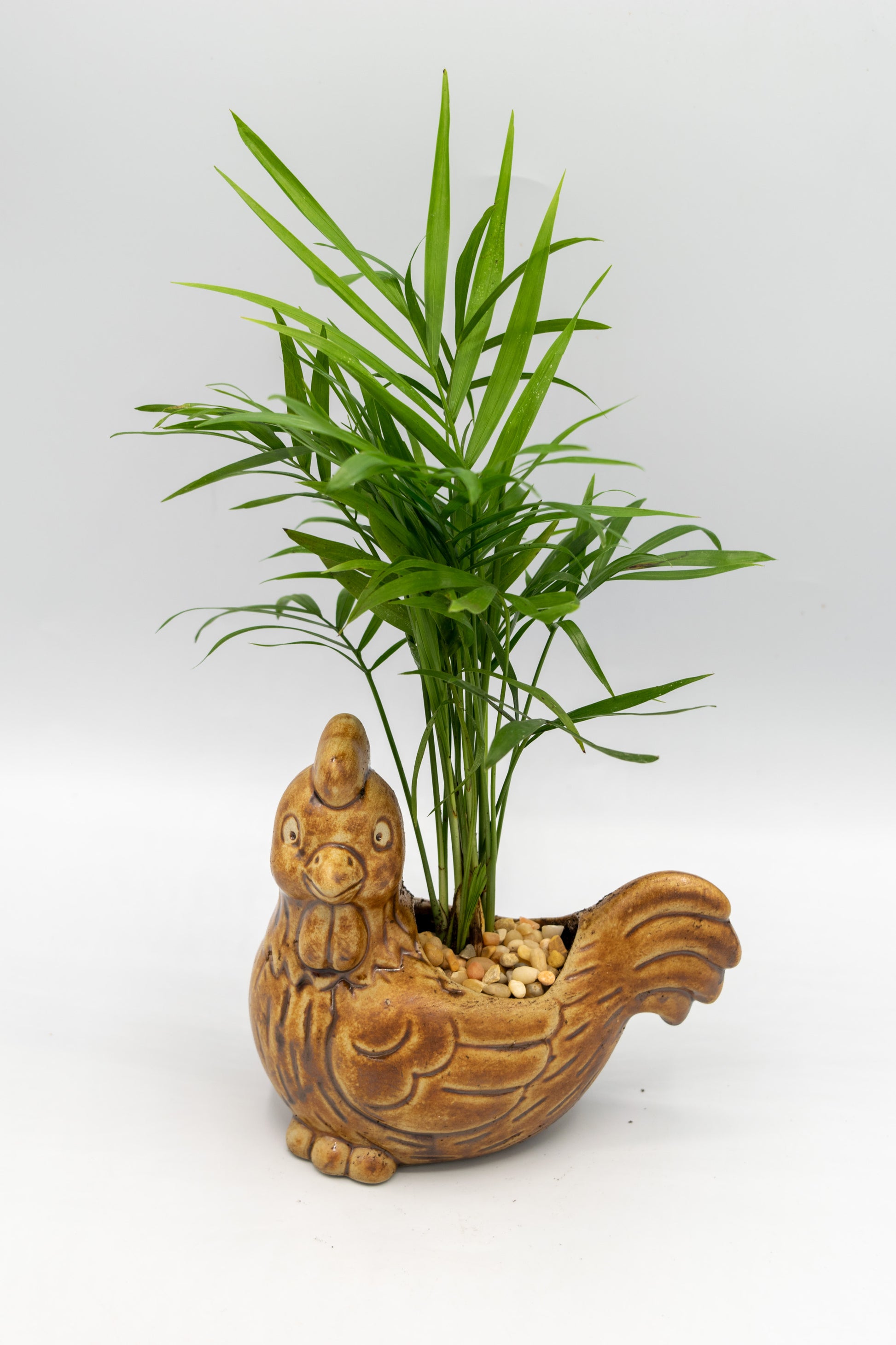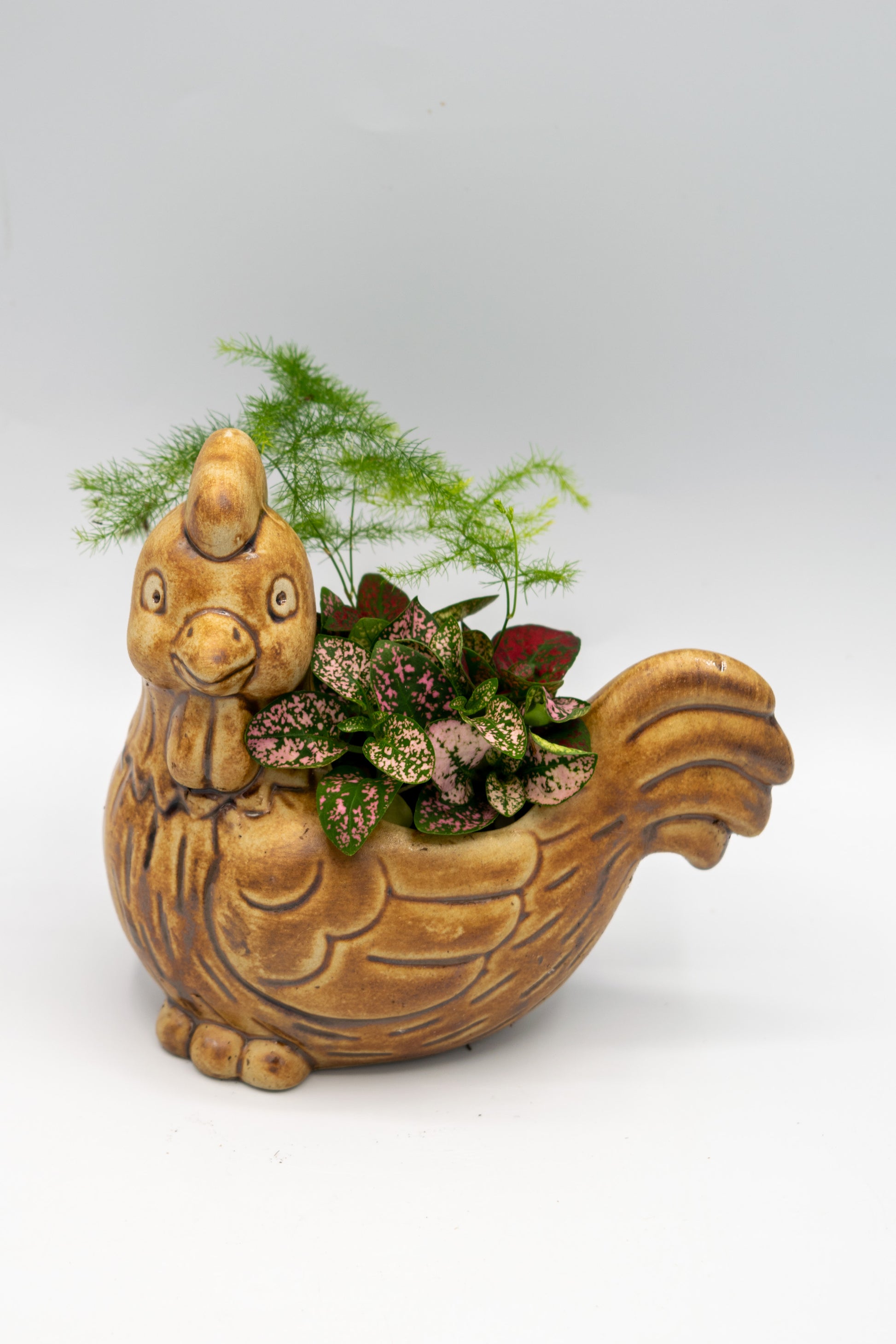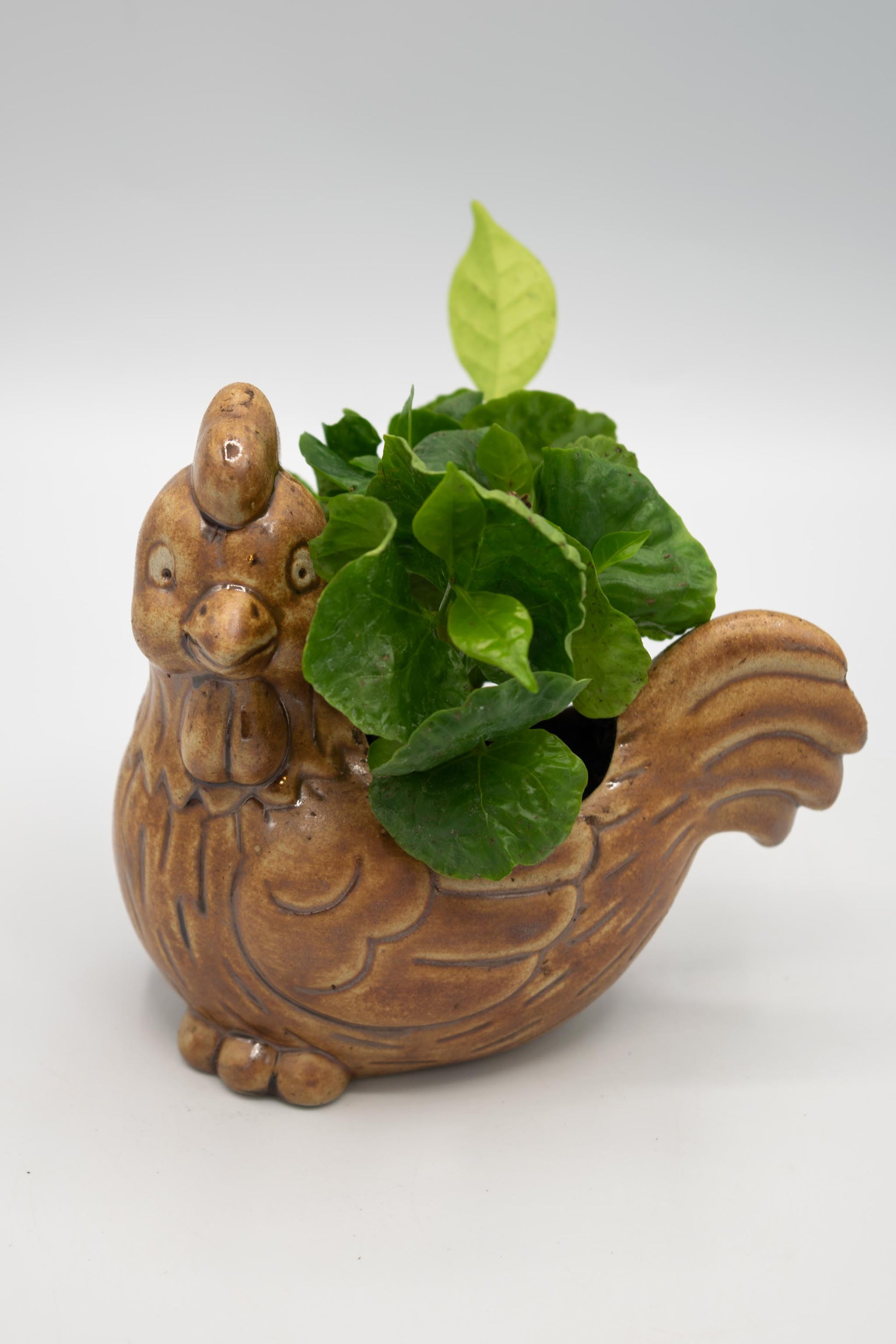 Chicken Planters from Taiwan potted with a low maintenance house plant of your choice. All our plant selections are great for the office, outdoor in the shade, or indoor bright area.