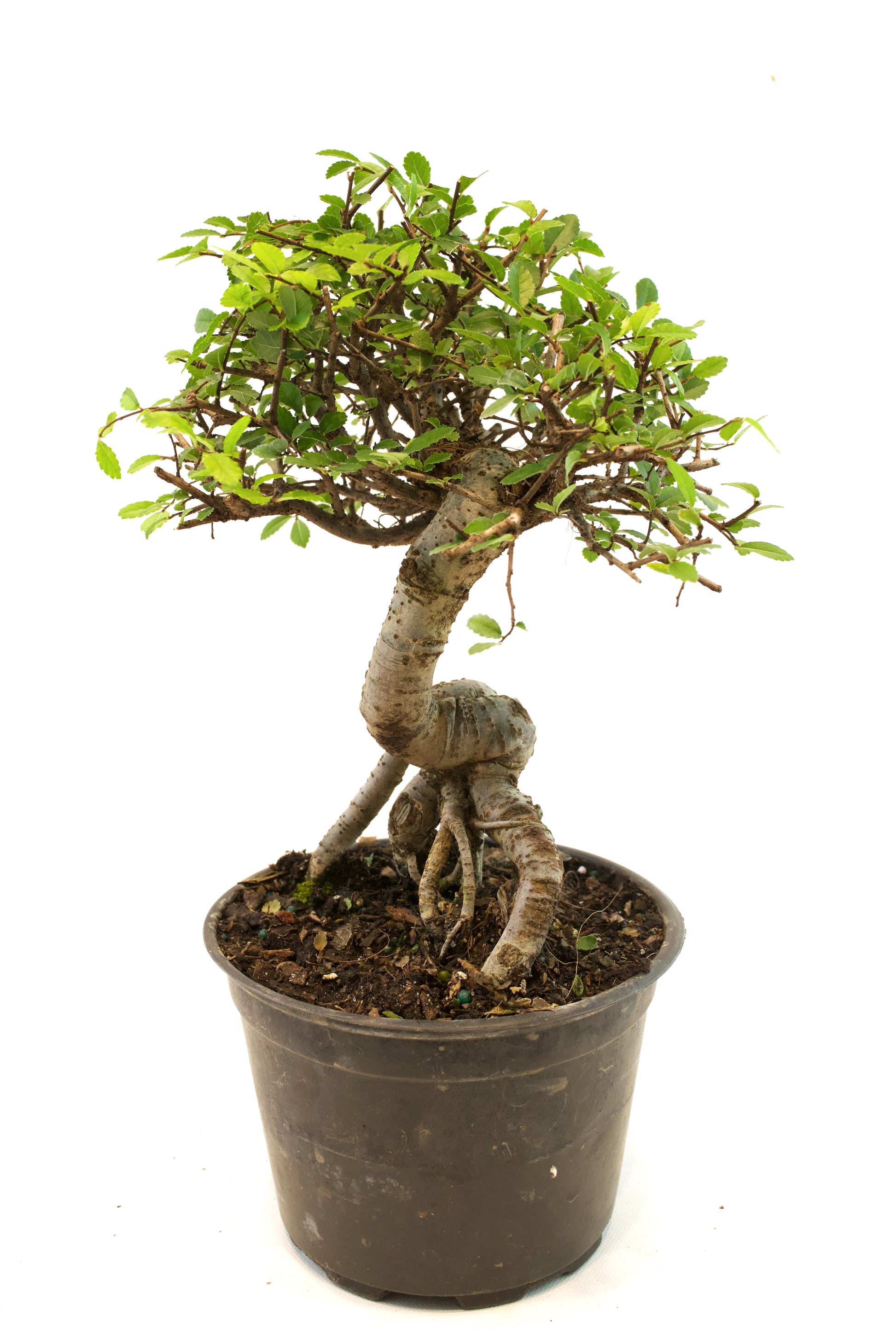 Classic Chinese Elm Bonsai in S-style with a graceful trunk and serrated leaves. Easy to care for, perfect for beginners or collectors.