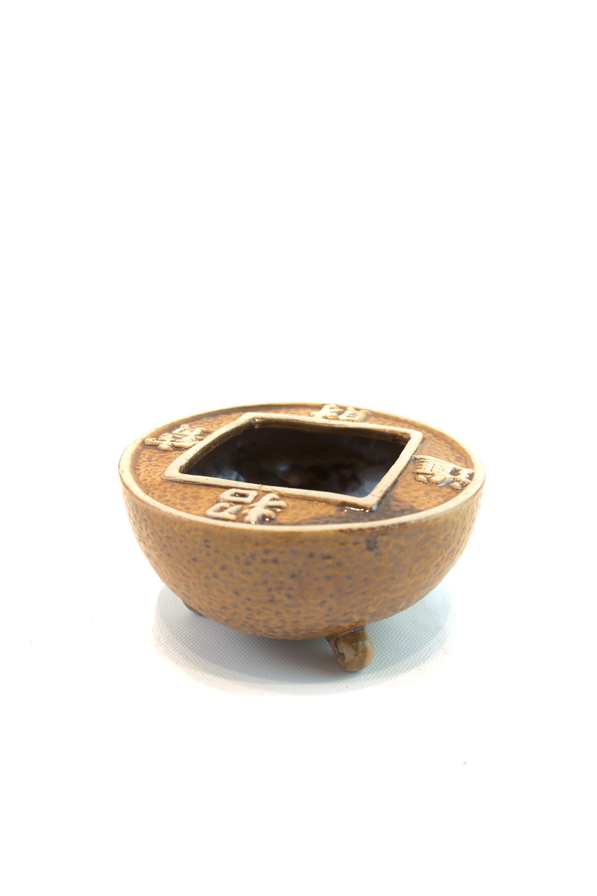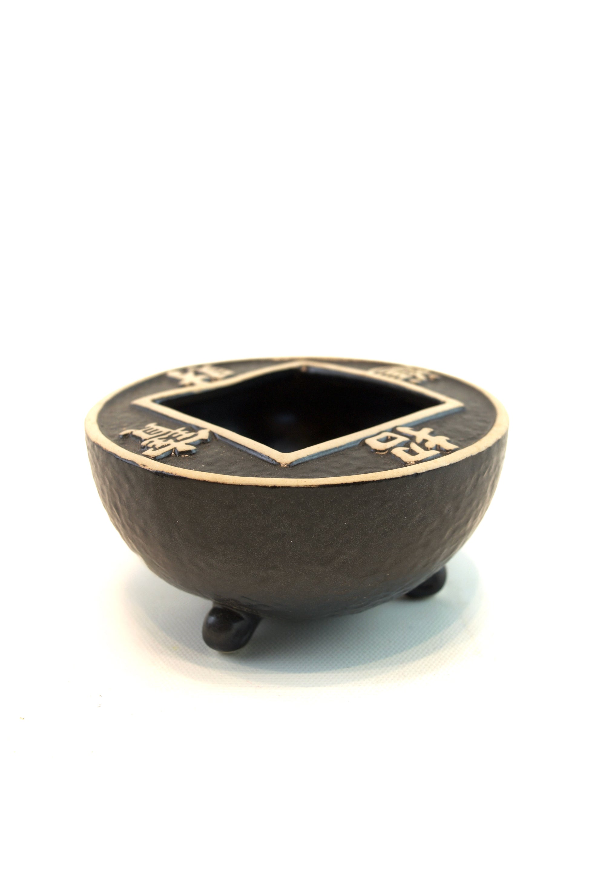 This bold, glossy Coin style planter features traditional Chinese characters and a warm two-tone glaze. It’s perfect for lucky bamboo, or houseplants with character.