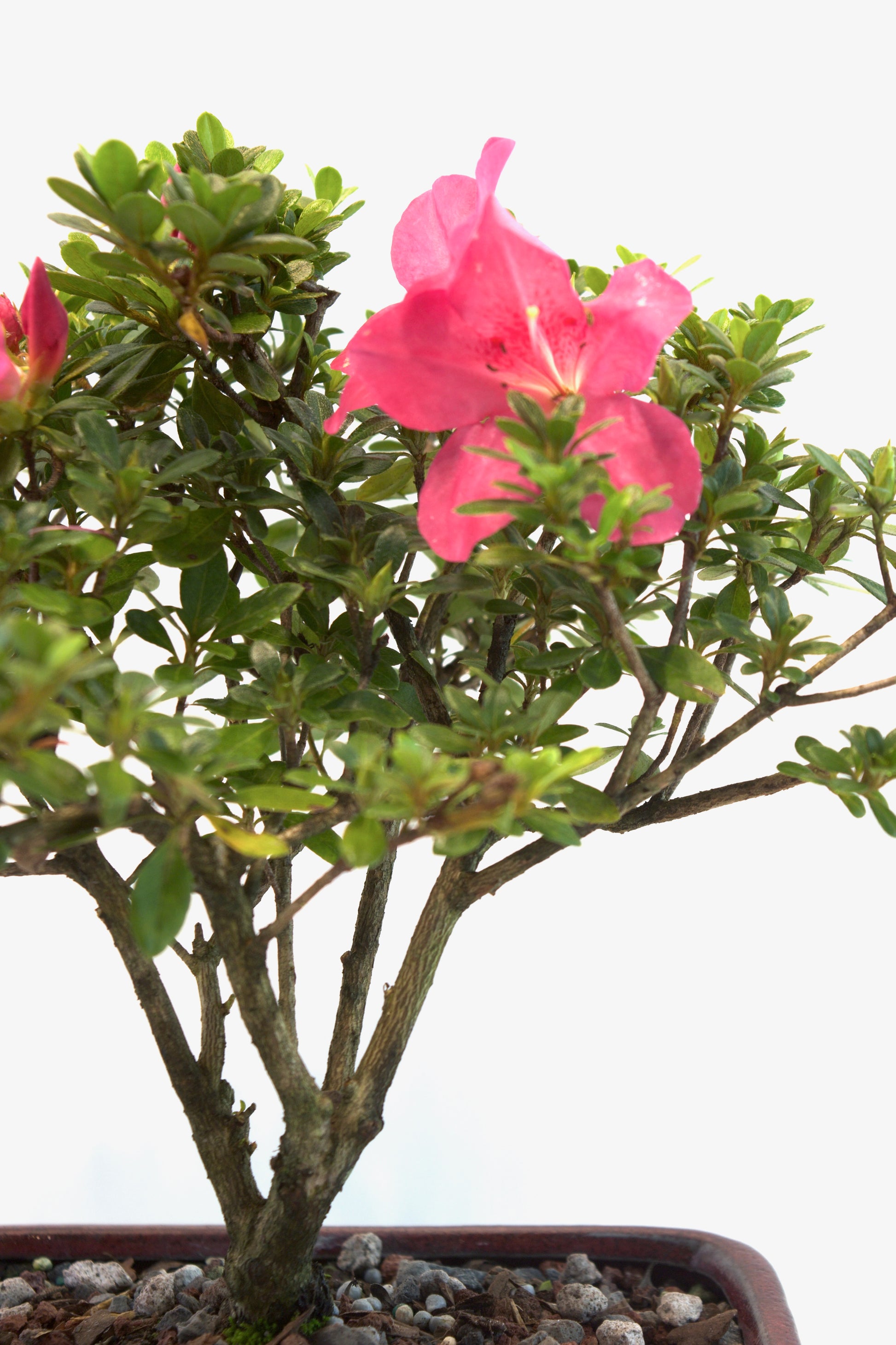 The Chinzan Azalea (Rhododendron indicum 'Chinzan') is a beloved flowering bonsai prized for its brilliant pink blooms and compact, bushy shape.