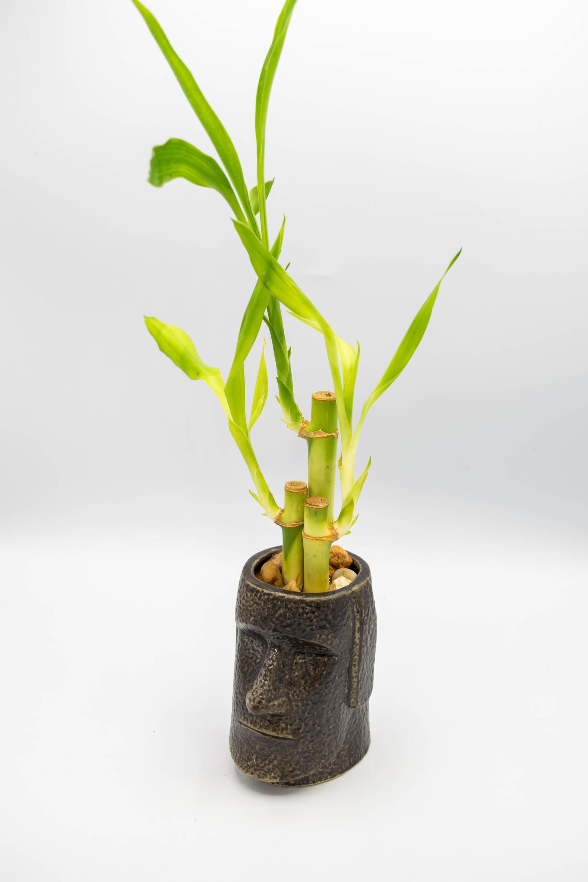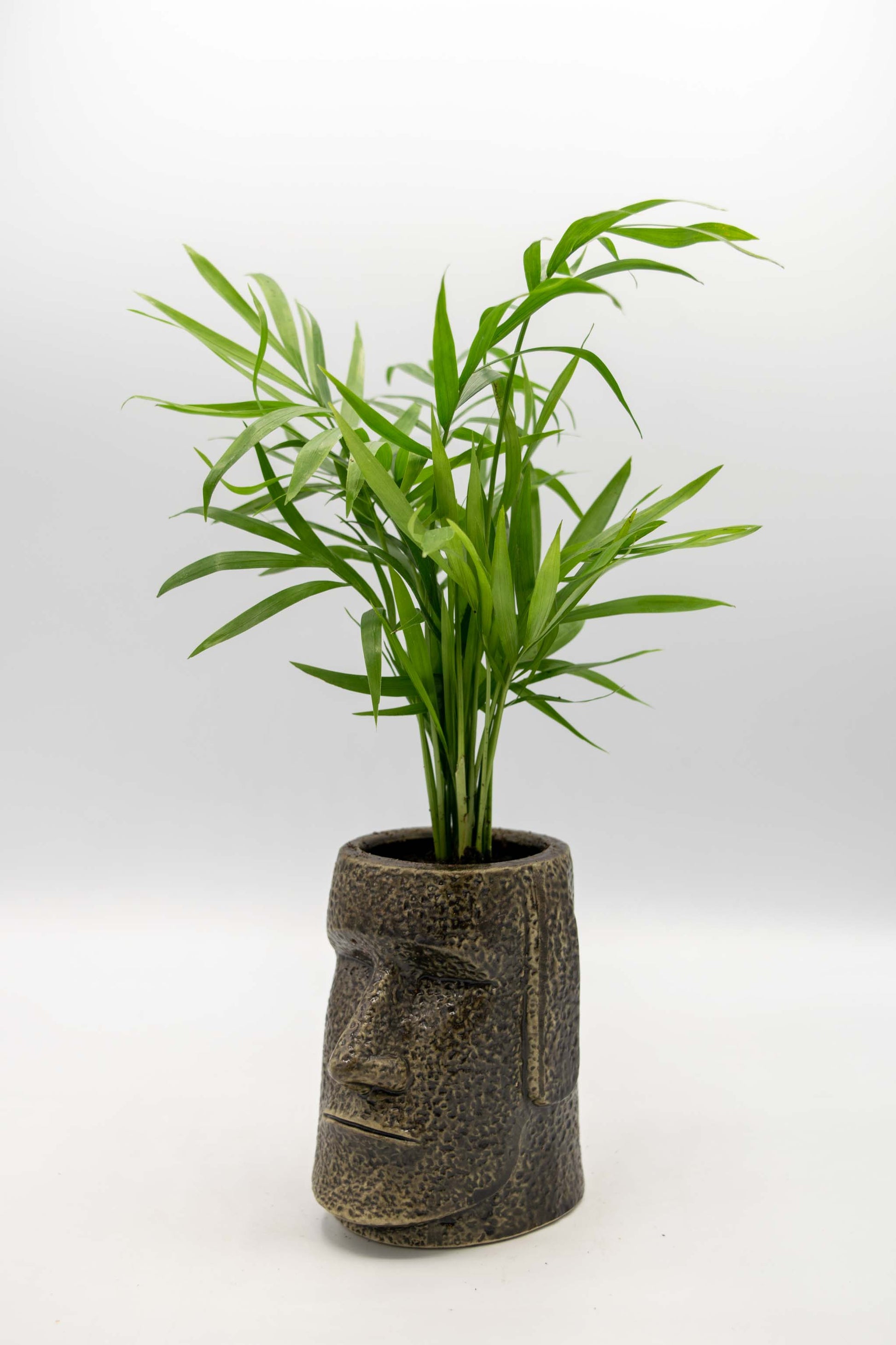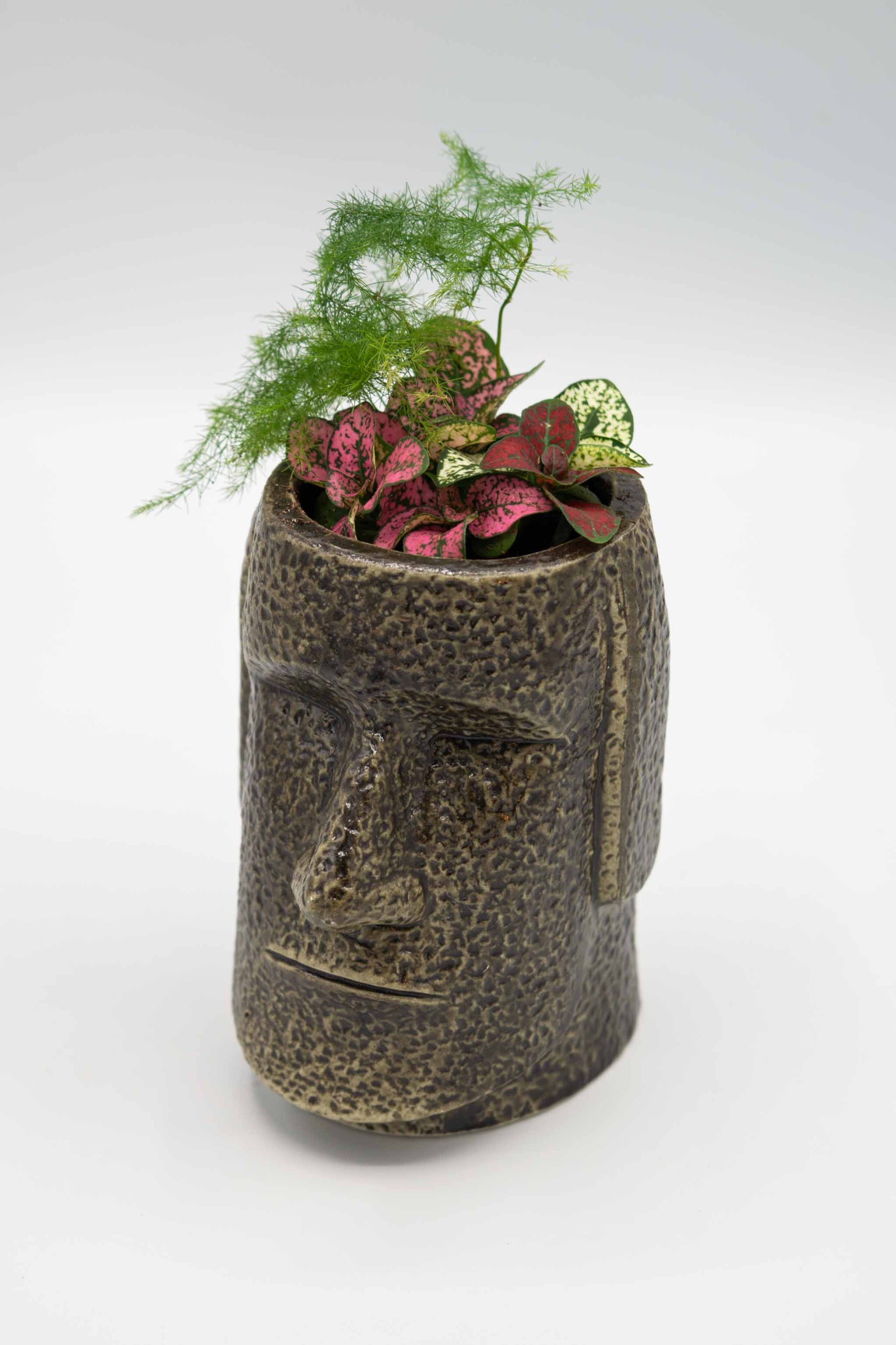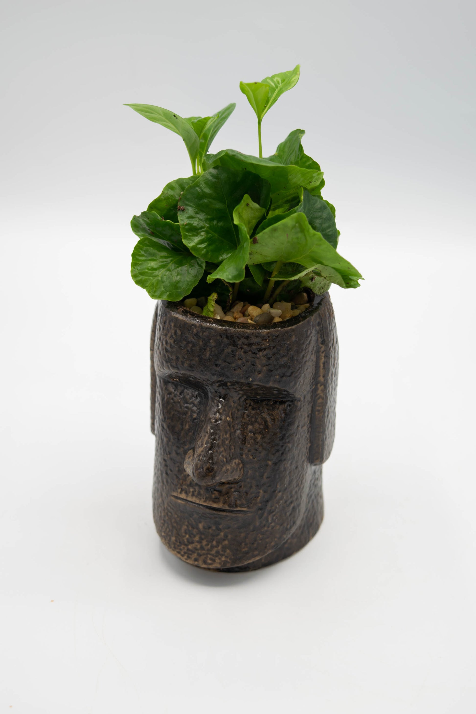 Easter Island Head Planter from Taiwan potted with a low maintenance house plant of your choice. All our plant selections are great for the office, outdoor in the shade, or indoor bright area.