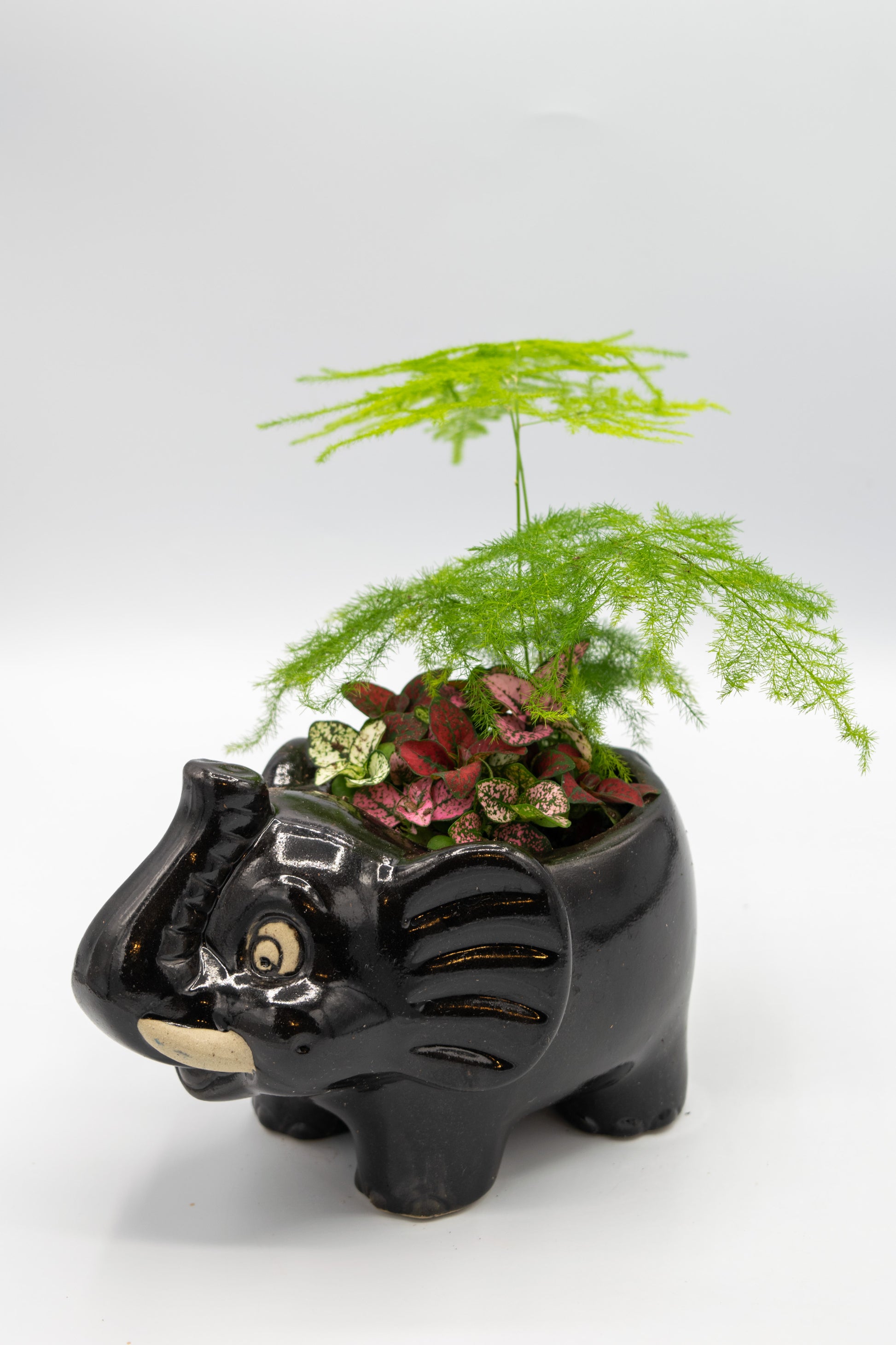 Elephant Planter from Taiwan potted with a low maintenance house plant of your choice. All our plant selections are great for the office, outdoor in the shade, or indoor bright area.