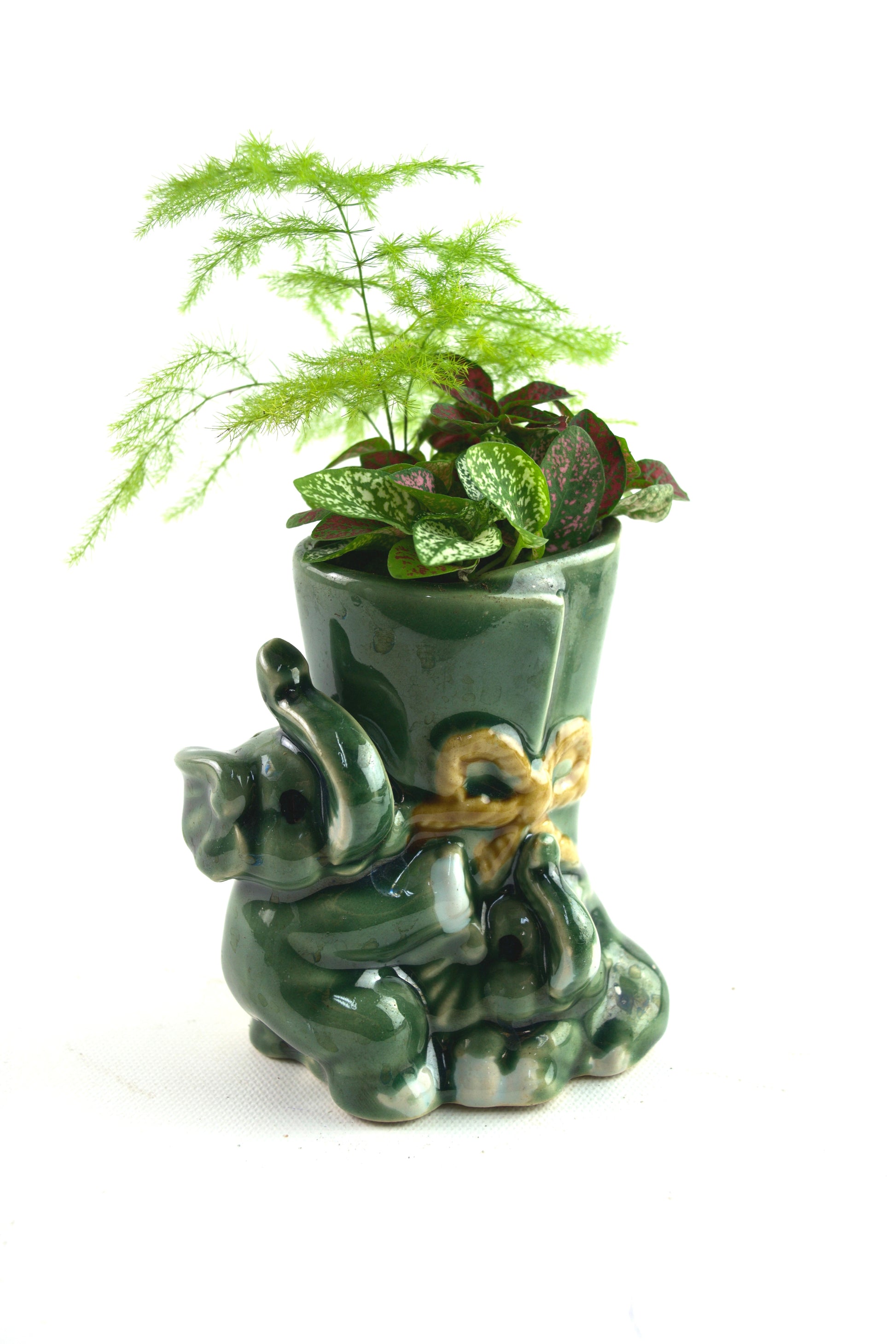 Elephant Planter from Taiwan potted with a low maintenance house plant of your choice. All our plant selections are great for the office, outdoor in the shade, or indoor bright area.