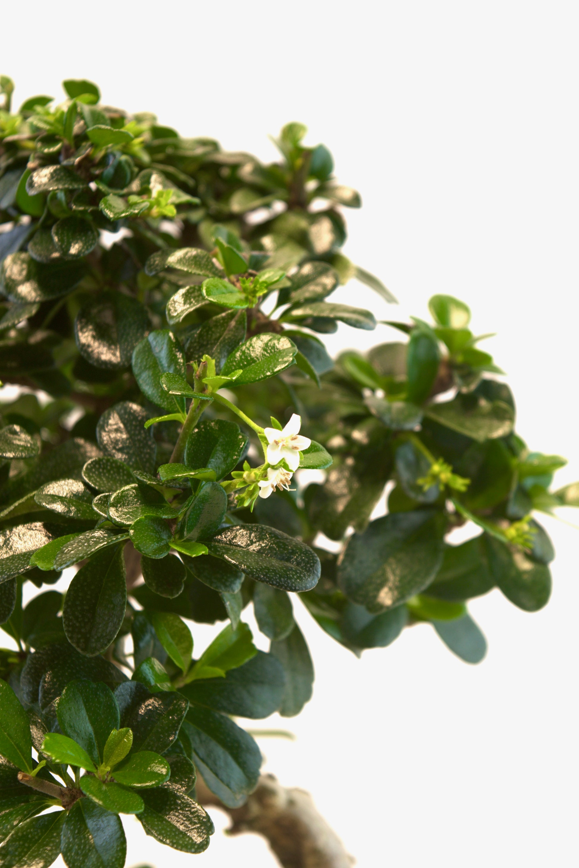 The Fukien Tea Bonsai is a popular indoor species known for its shiny dark-green leaves, small white flowers, and tiny red berries. Native to China and Southeast Asia, this tree brings year-round beauty and is often considered a “classic” indoor bonsai for both beginners and enthusiasts.
