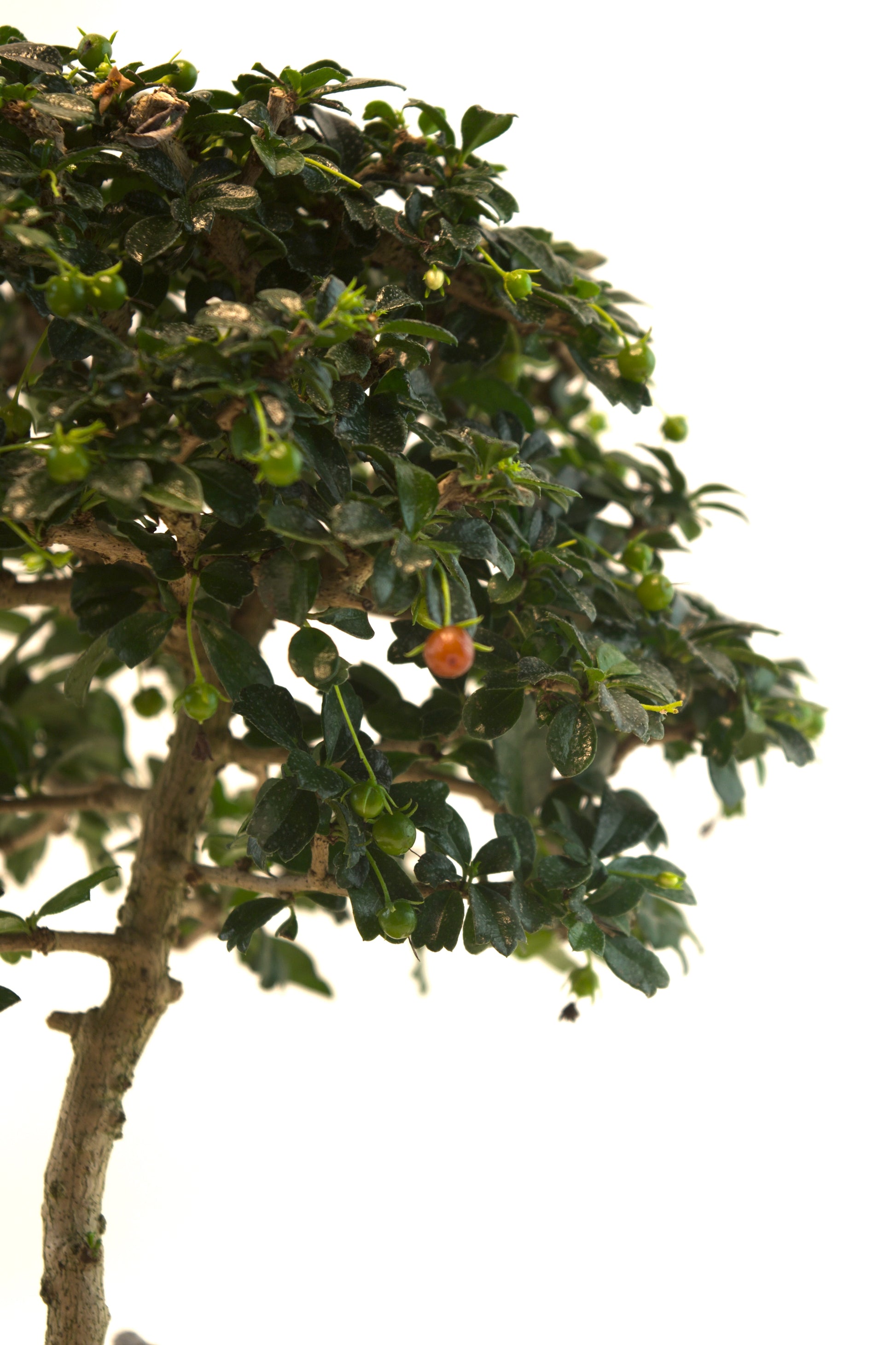 The Fukien Tea Bonsai is a popular indoor species known for its shiny dark-green leaves, small white flowers, and tiny red berries. Native to China and Southeast Asia, this tree brings year-round beauty and is often considered a “classic” indoor bonsai for both beginners and enthusiasts.