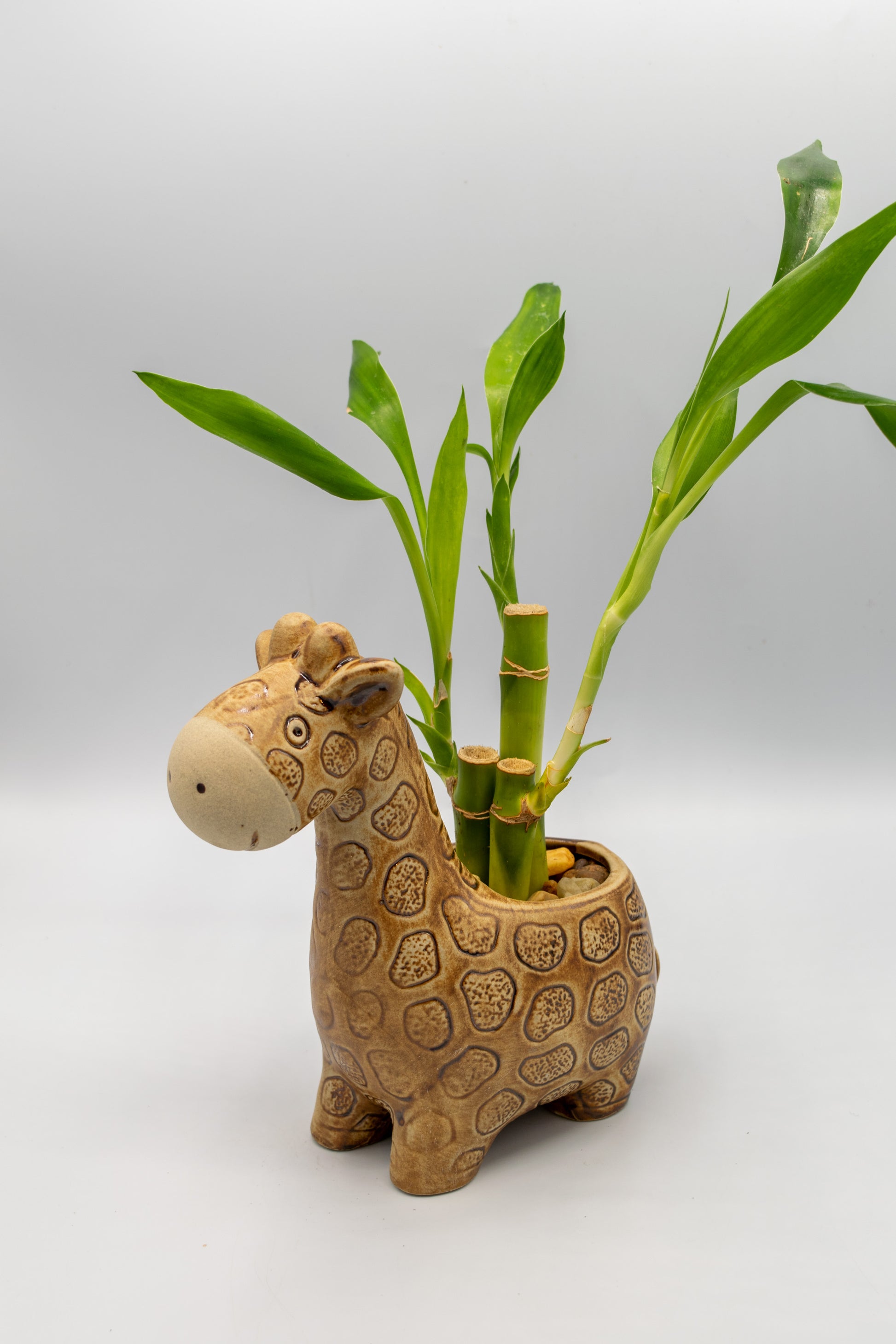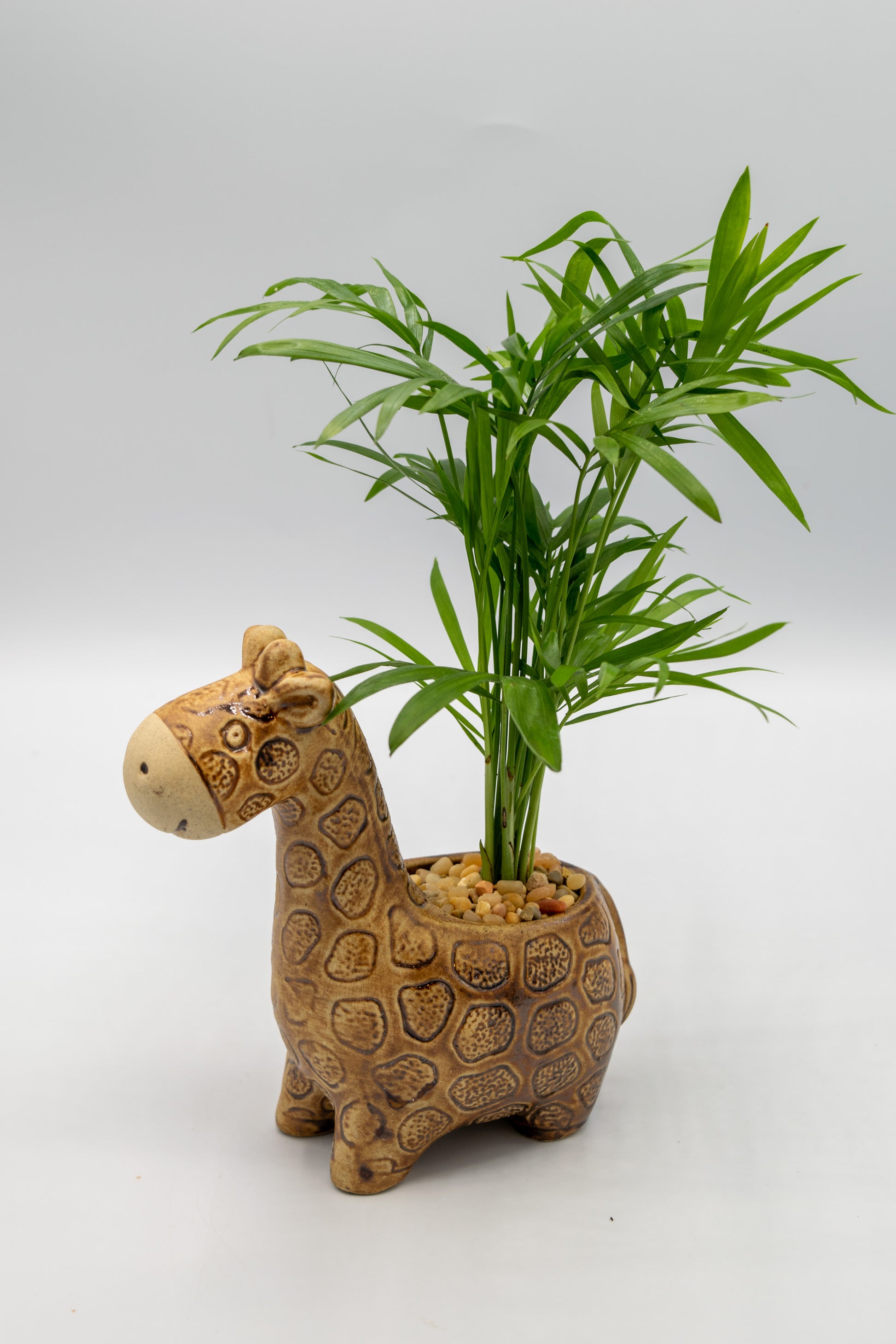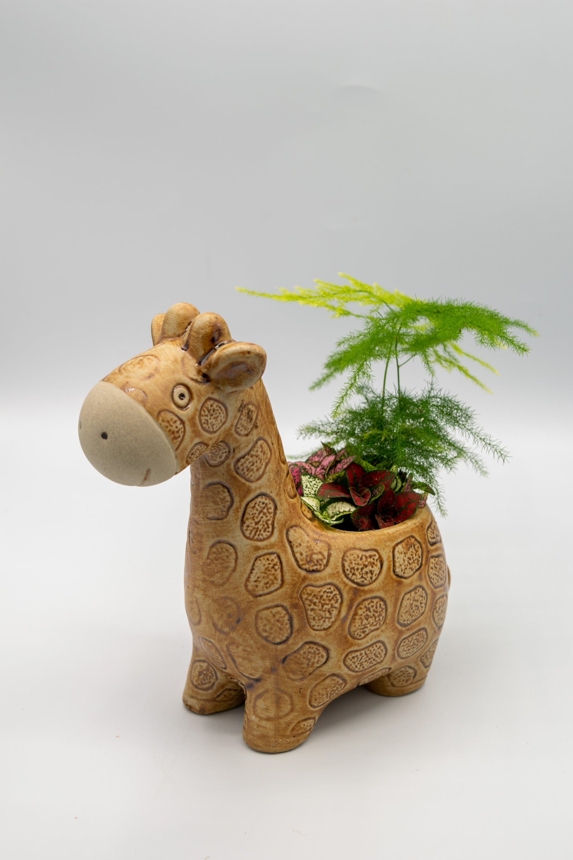 Giraffe Planter from Taiwan potted with a low maintenance house plant of your choice. All our plant selections are great for the office, outdoor in the shade, or indoor bright area.