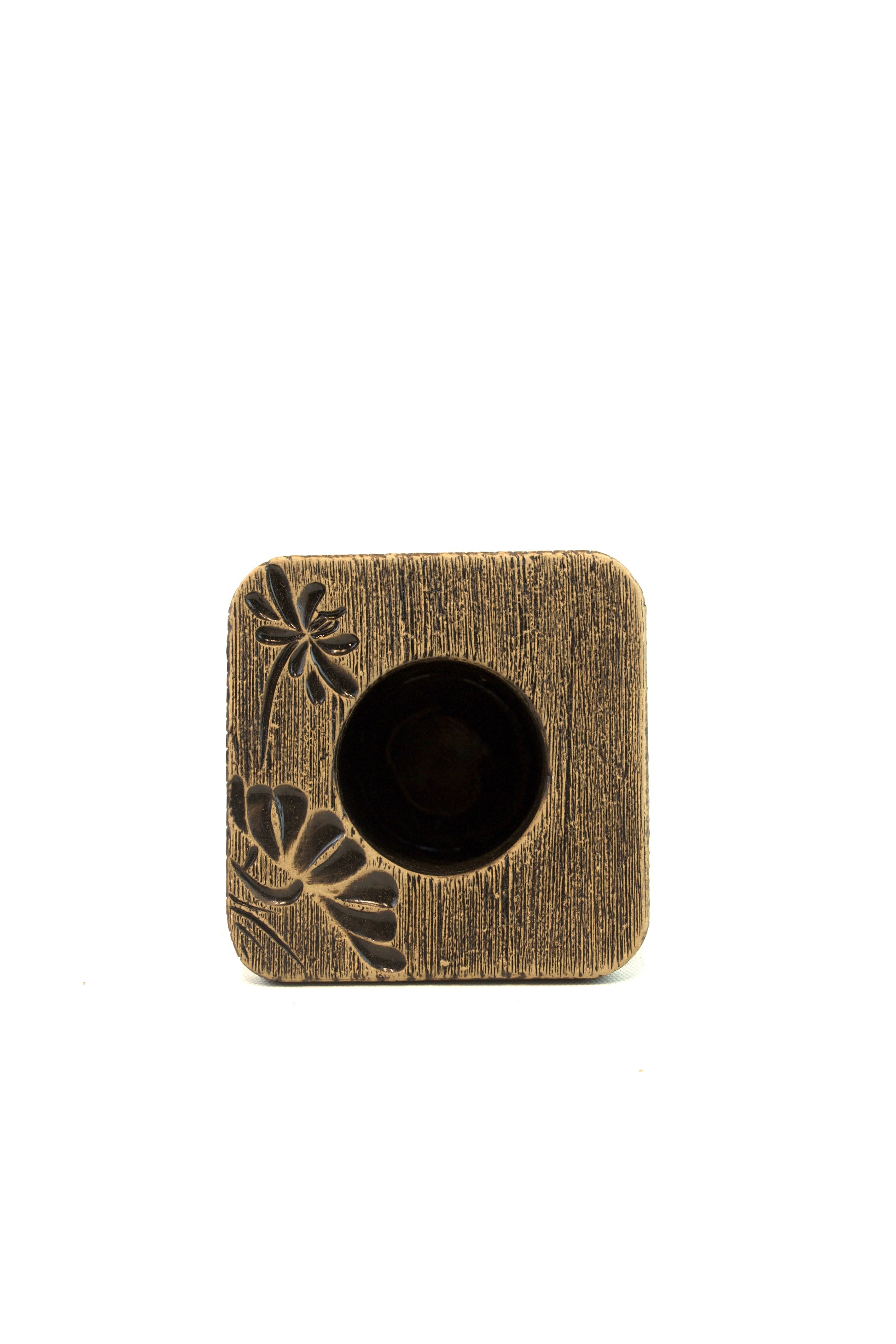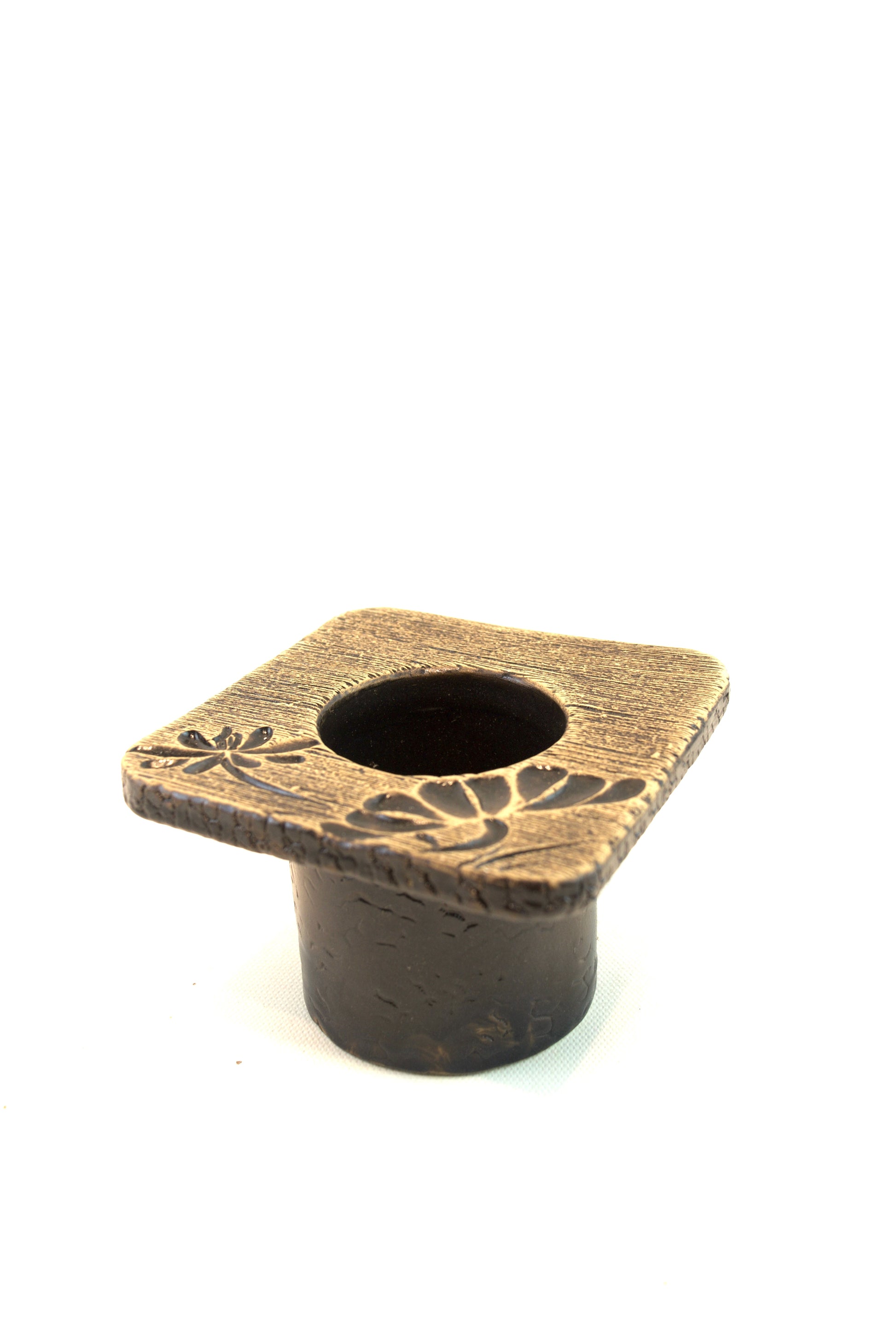 This unique handmade ceramic planter blends natural elegance with traditional artistry. Its square-edged rim with lotus flower and dragonfly carvings makes it stand out as both a decorative accent and a functional planter for your favorite small indoor plants.