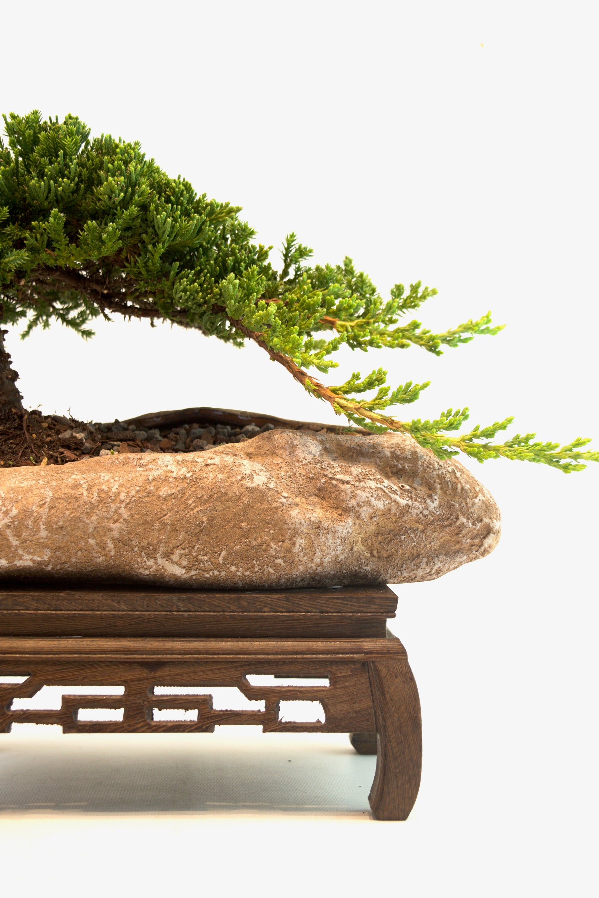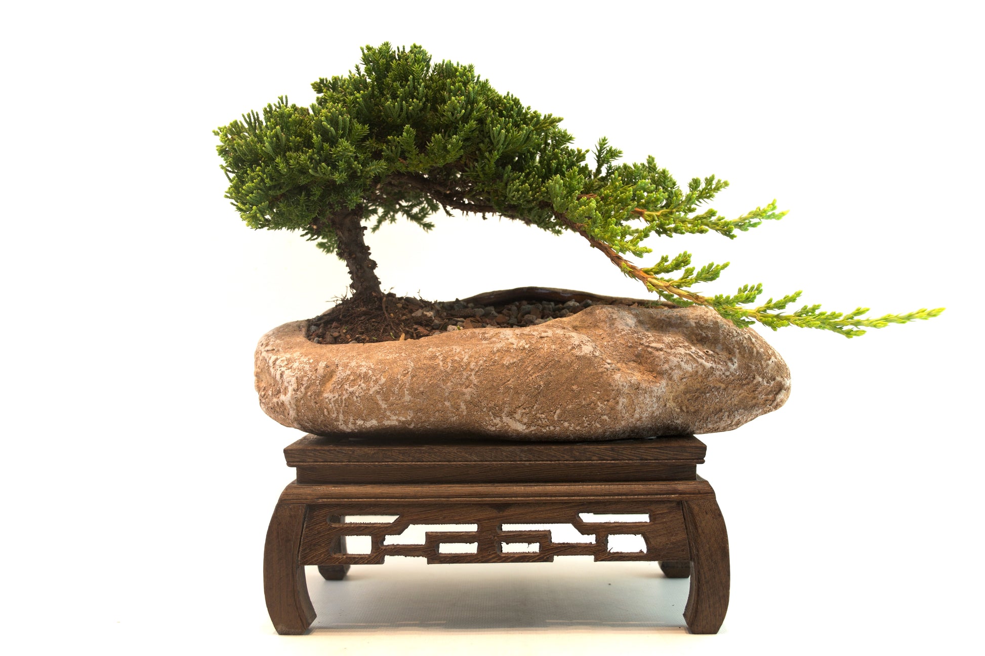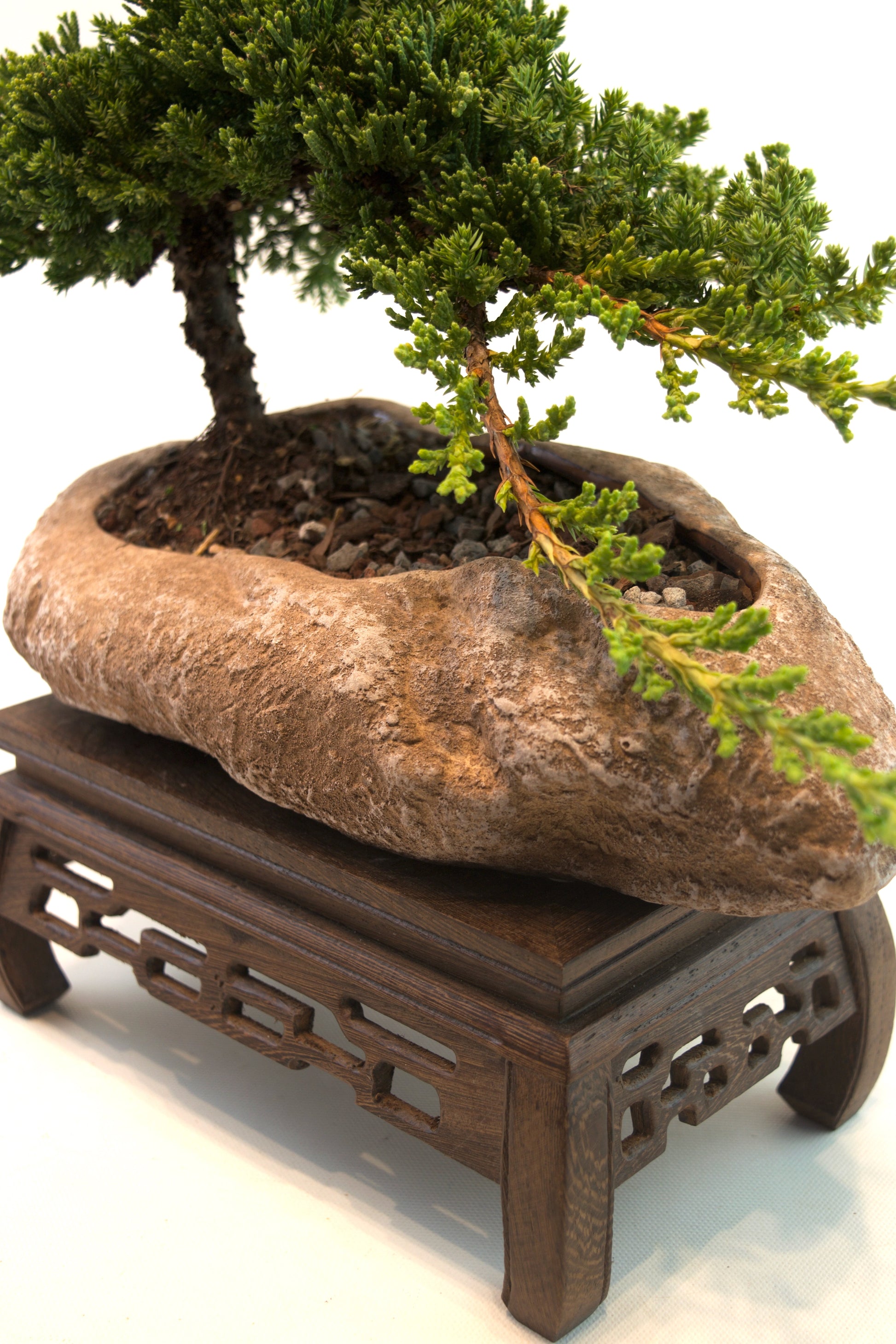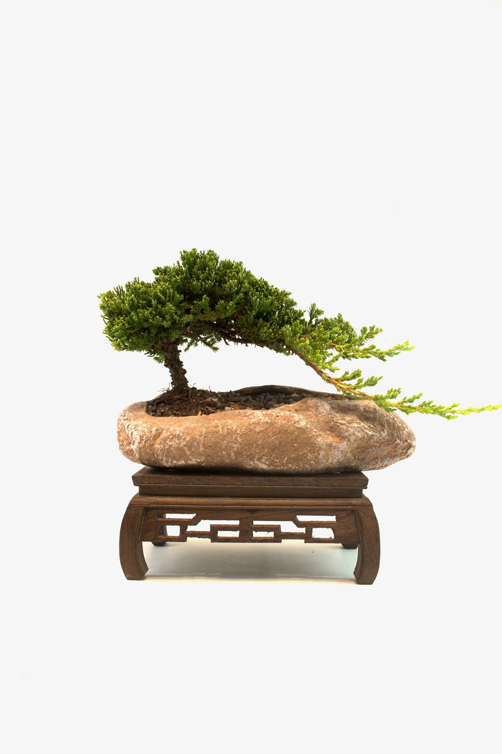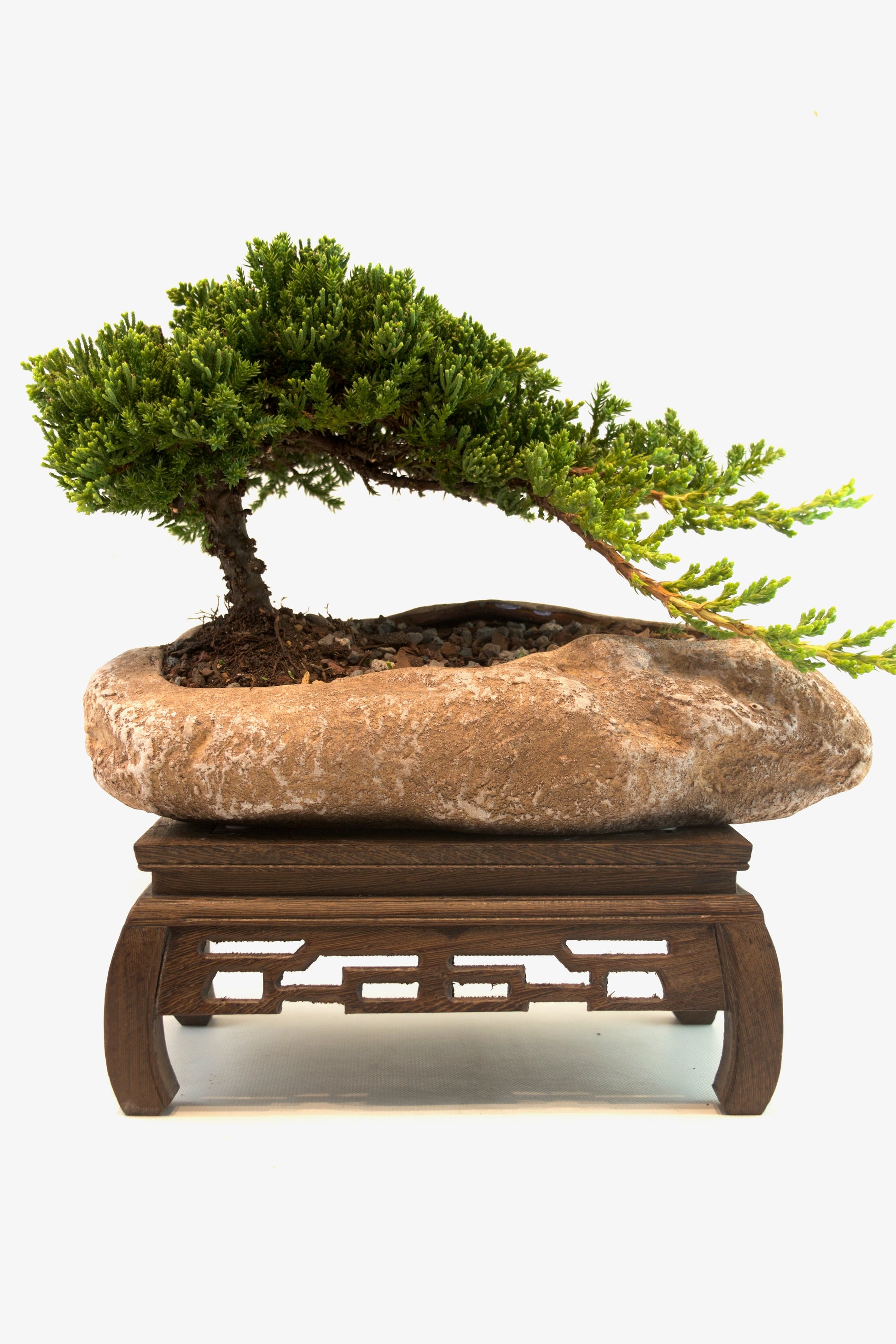 Juniper Live Bonsai Rock Ceramic 10.5" Pot - One of a Kind Bonsai