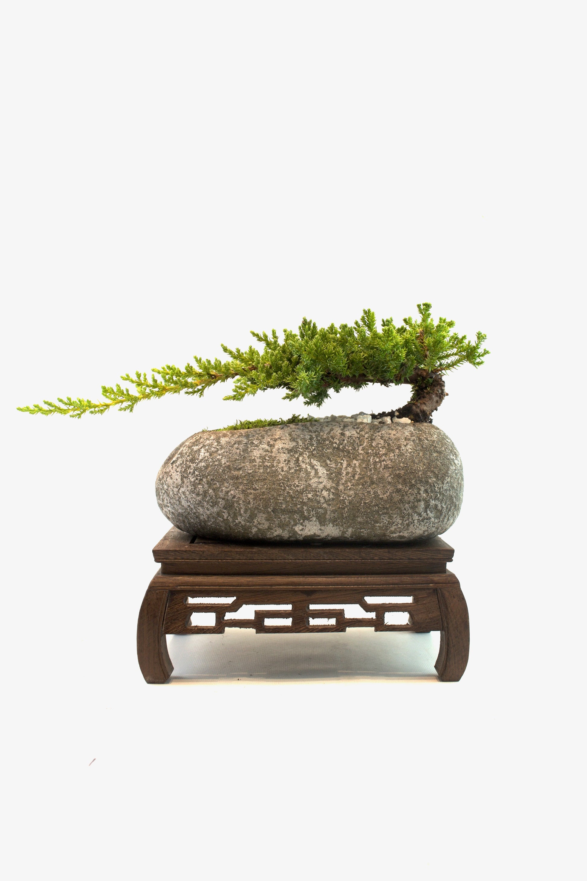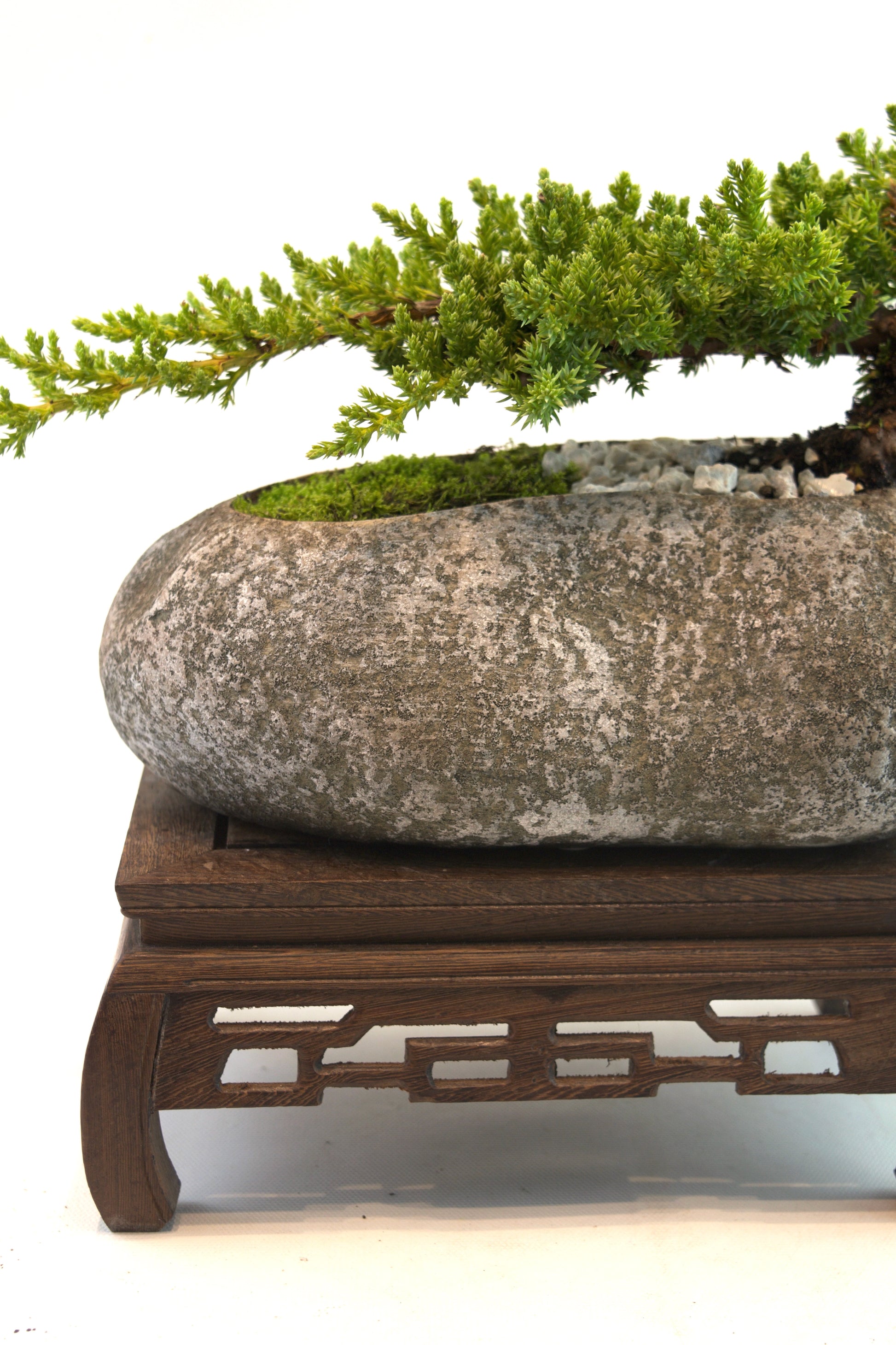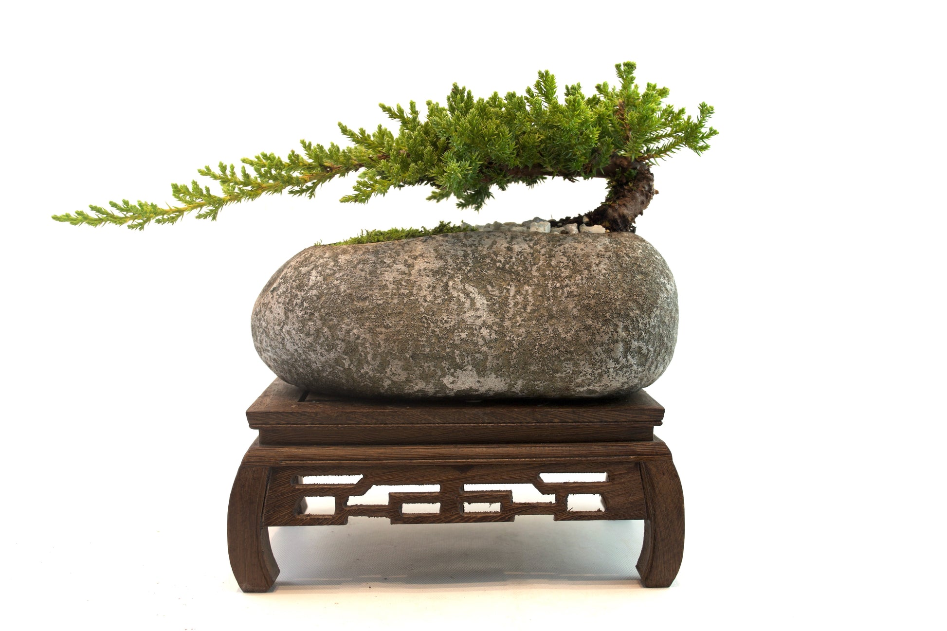 Juniper Live Bonsai Rock Ceramic 9" Pot - One of a Kind Bonsai