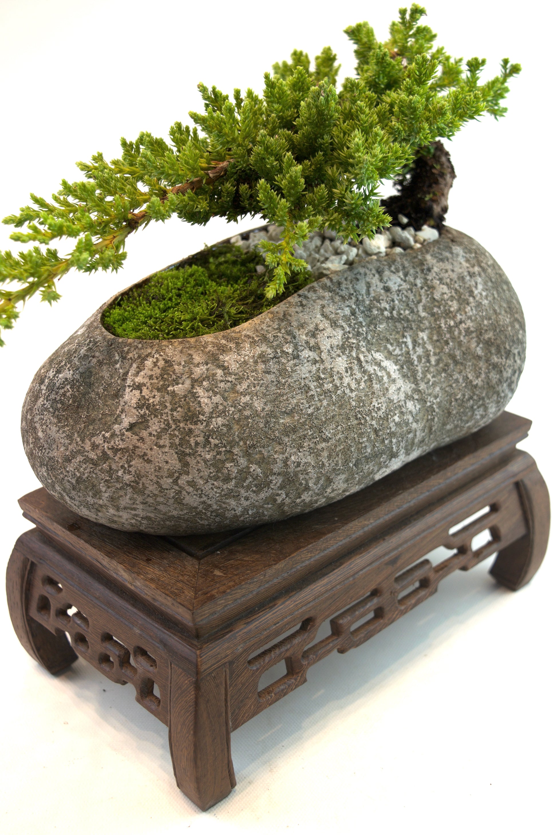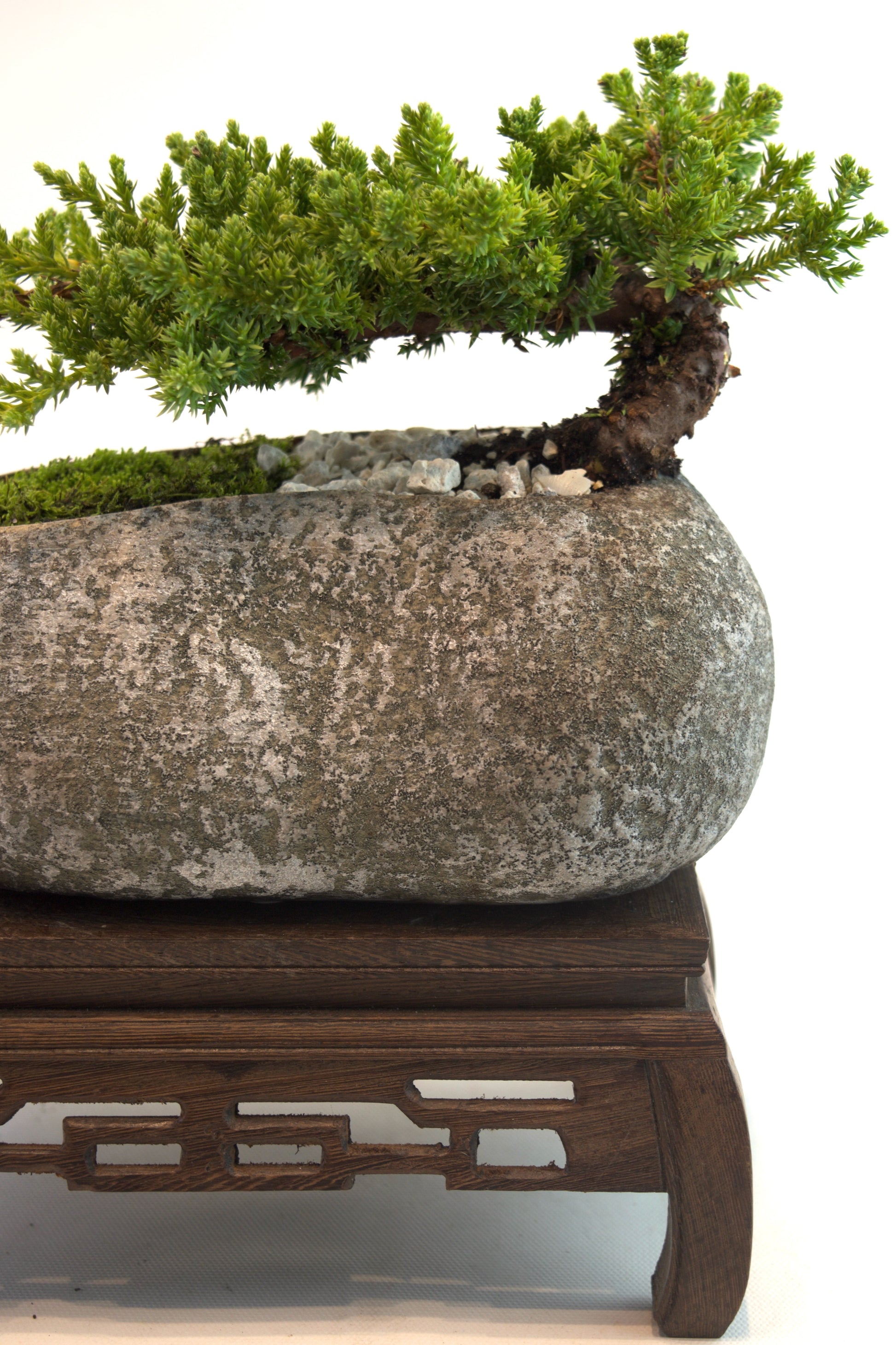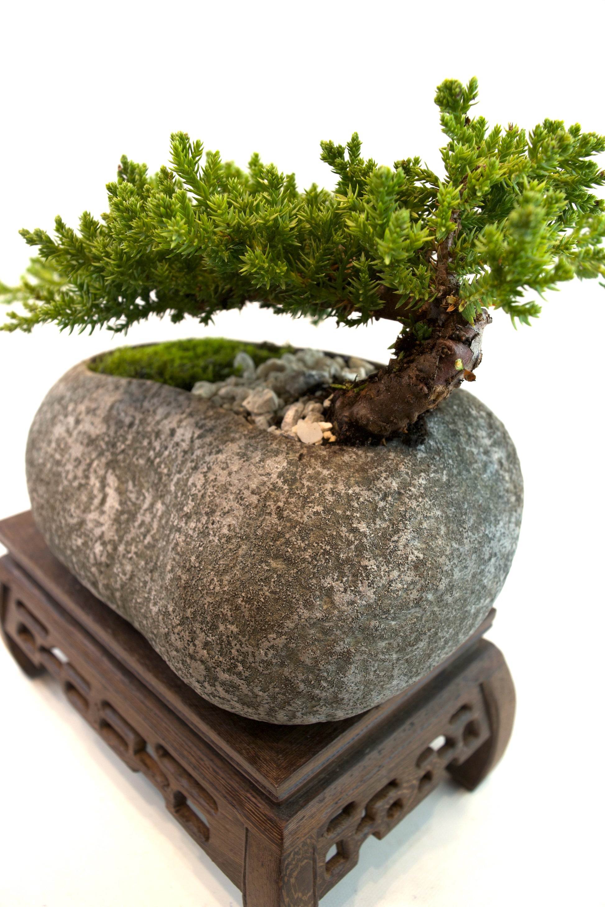 Juniper Live Bonsai Rock Ceramic 9" Pot - One of a Kind Bonsai