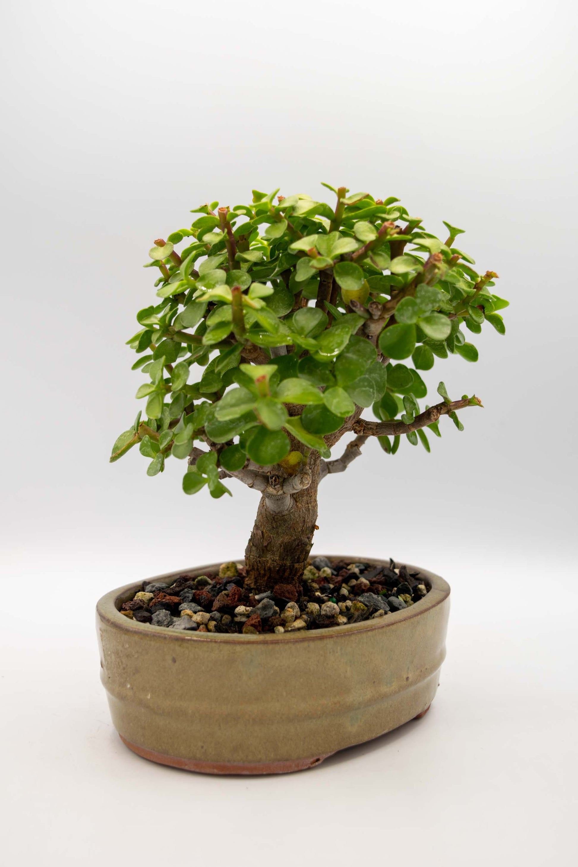 Mini Green Jade Tan Oval Ceramic 6" Pot - One of a Kind Bonsai