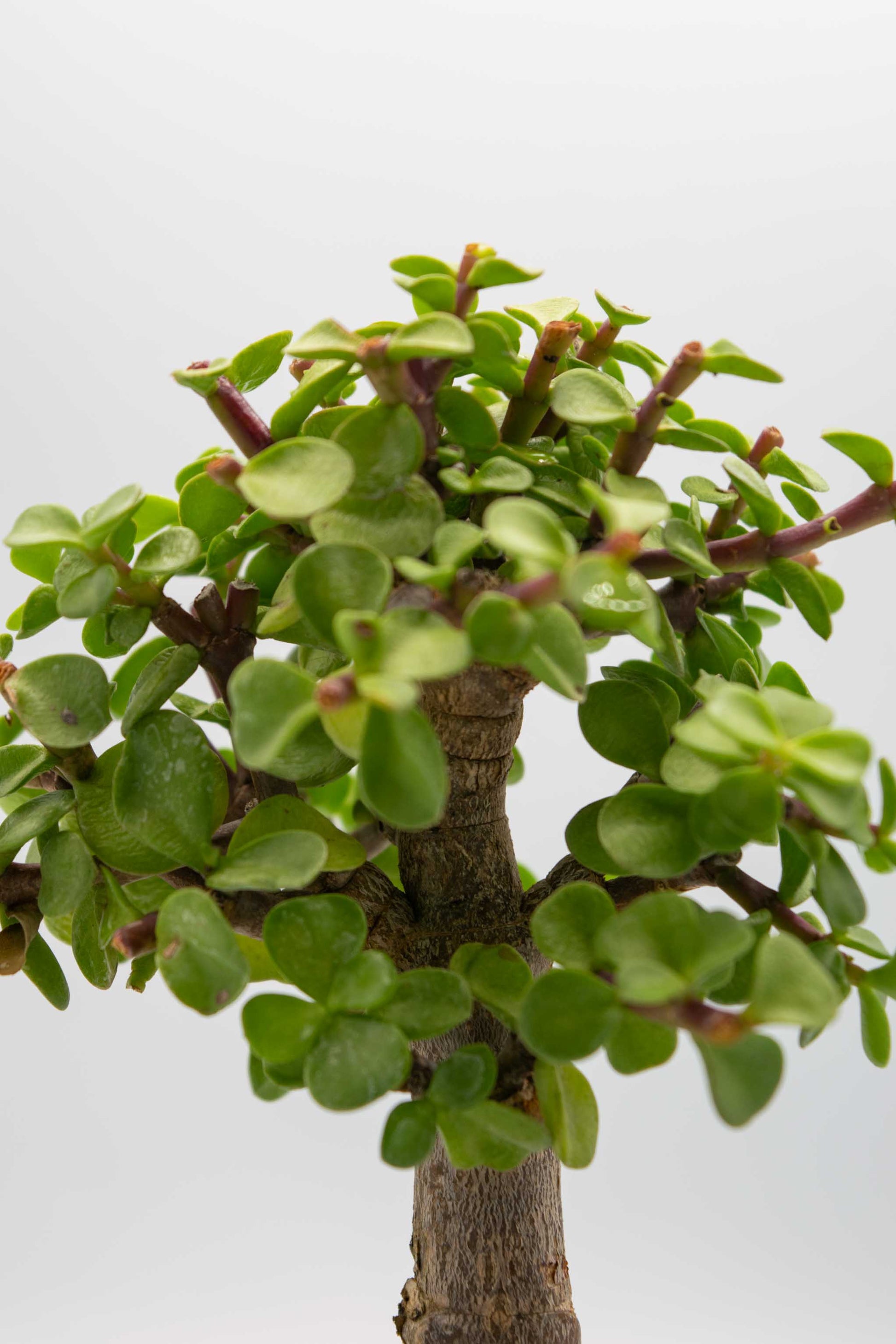 A Fleshy, softly woody shrub or small tree up to 3m to 4m, often sprawling; occurring on dry rocky hillsides and in succulent scrub. Portulacaria Afra, also called “Elephant Plant” or “Small leaf Jade” is relatively new in bonsai but one that almost anyone can grow. It can withstand long periods without water making them excellent plants for beginners. Advanced students of bonsai find them excellent material because they adapt to any style and develop relatively fast. The bark is green when young, becoming red-brown to slate grey, and smooth with conspicuous leaf scars. Leaves are simple, opposite, almost circular.