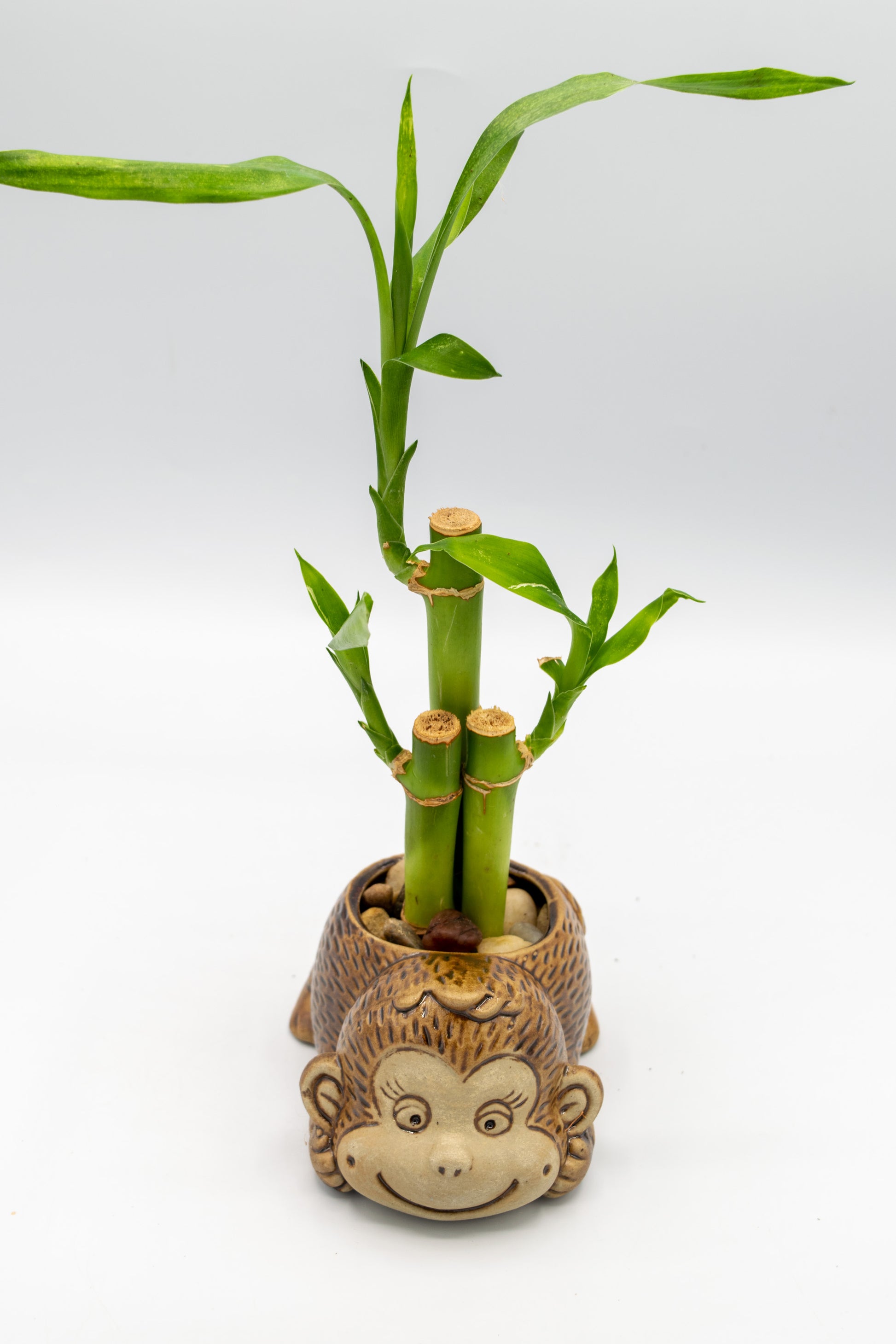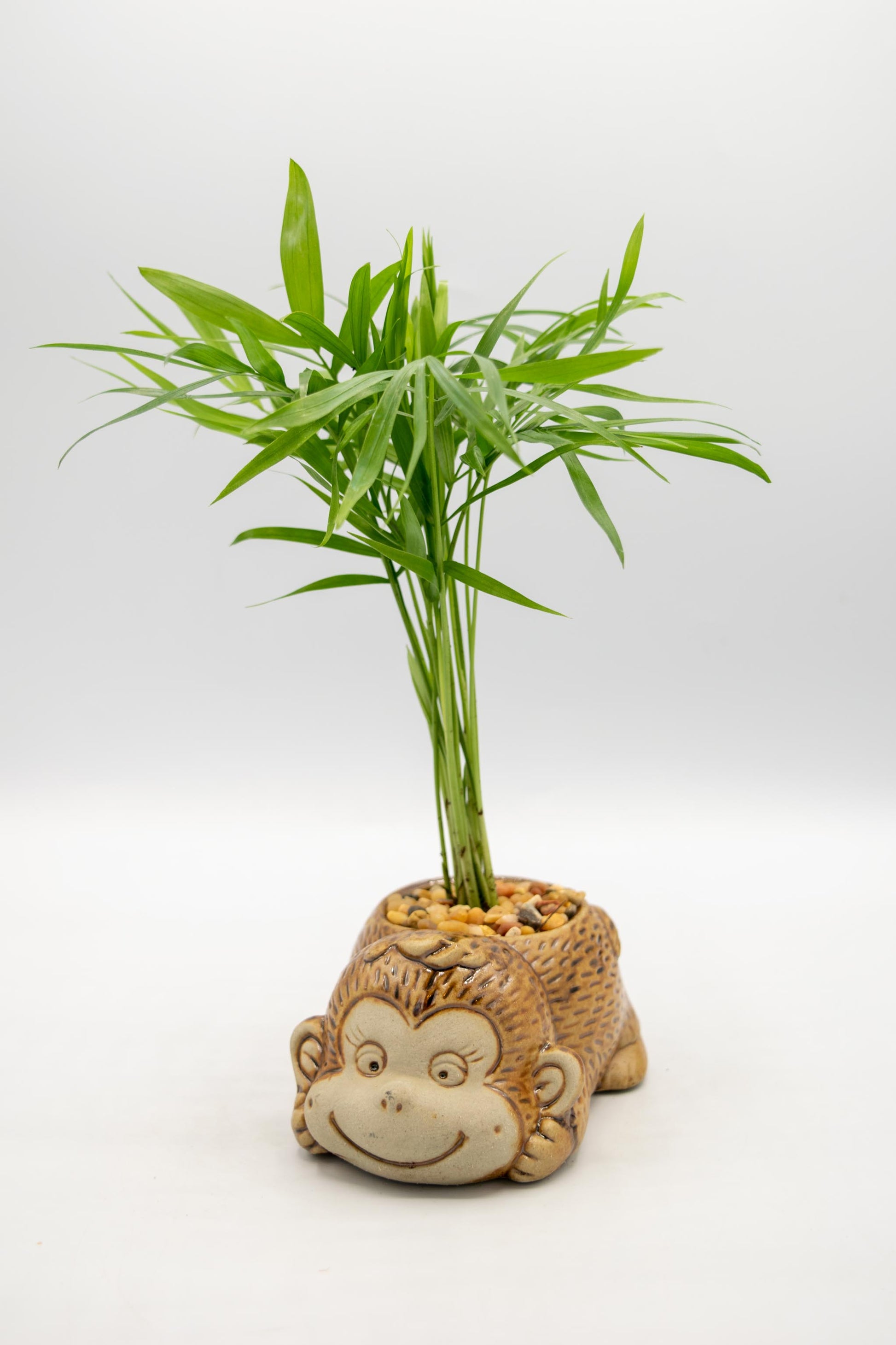 Monkey Planters from Taiwan potted with a low maintenance house plant of your choice. All our plant selections are great for the office, outdoor in the shade, or indoor bright area.