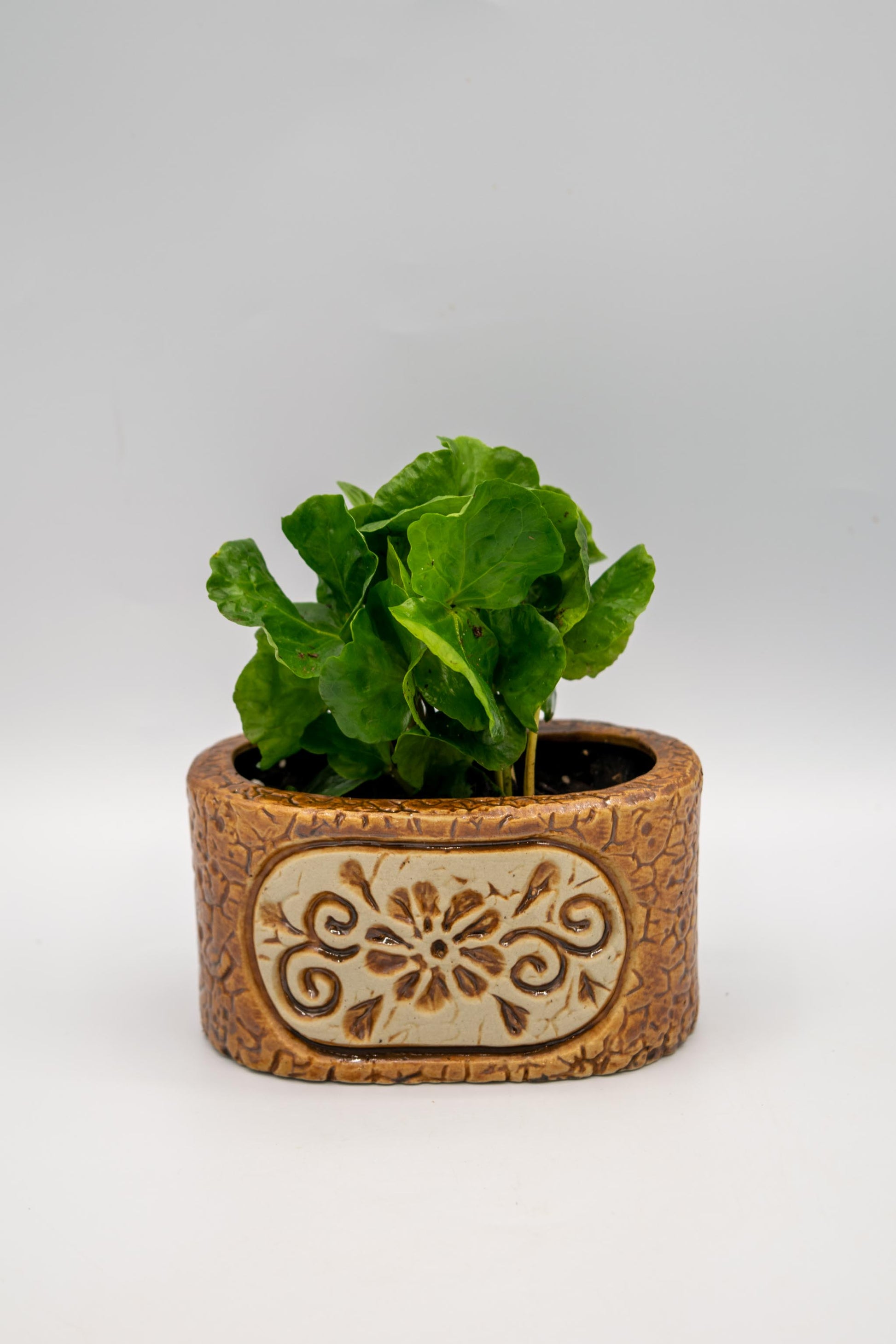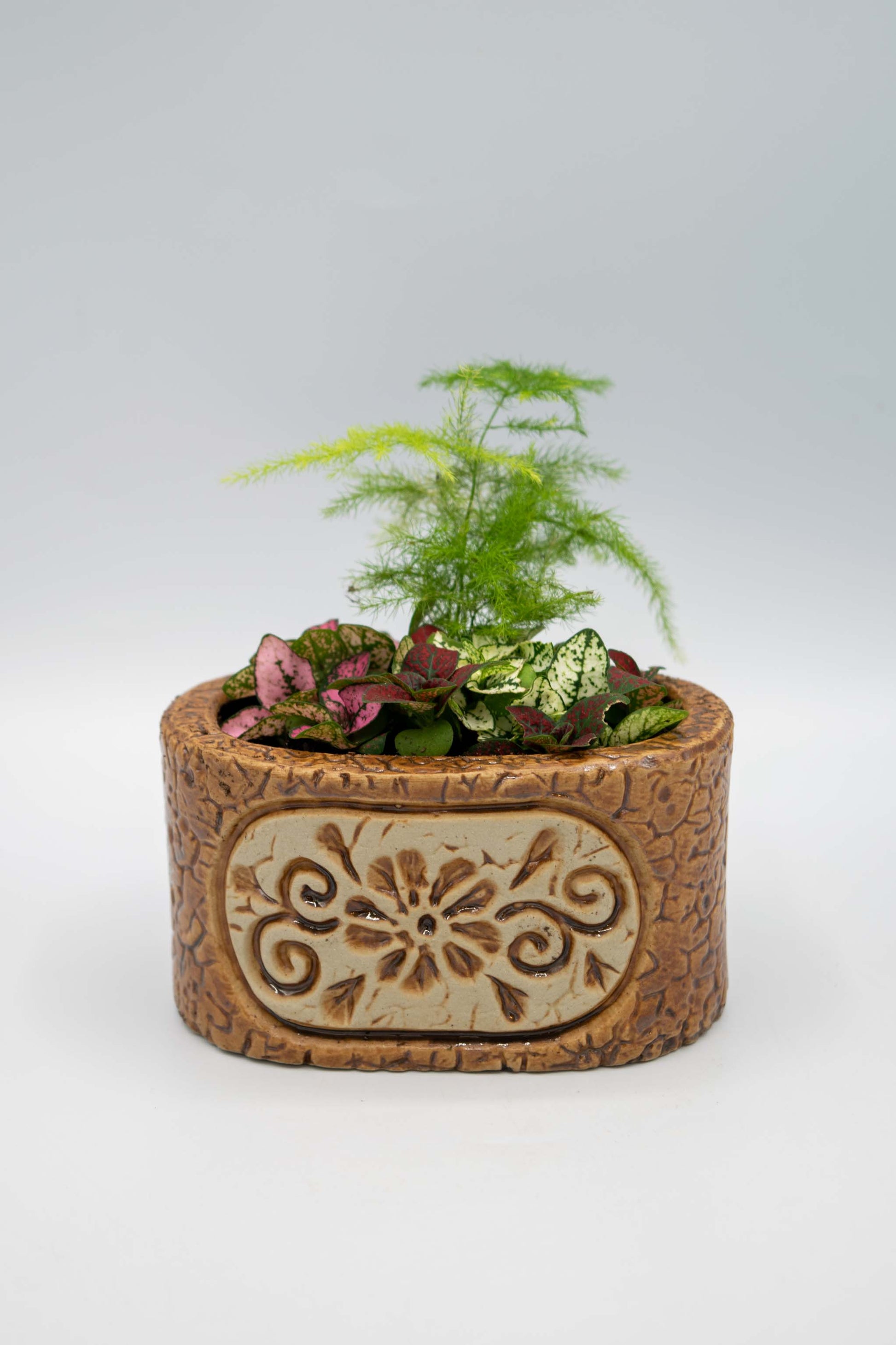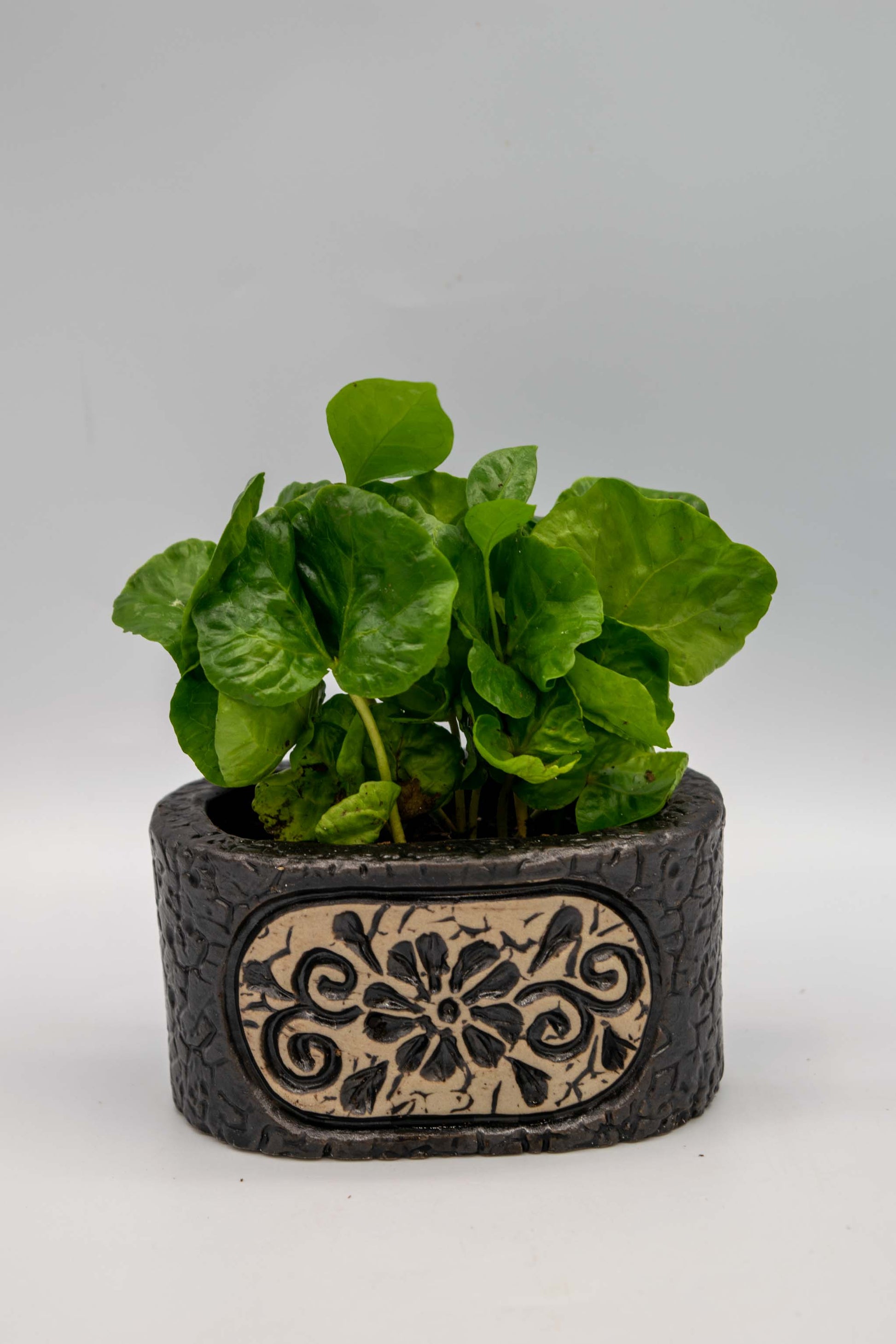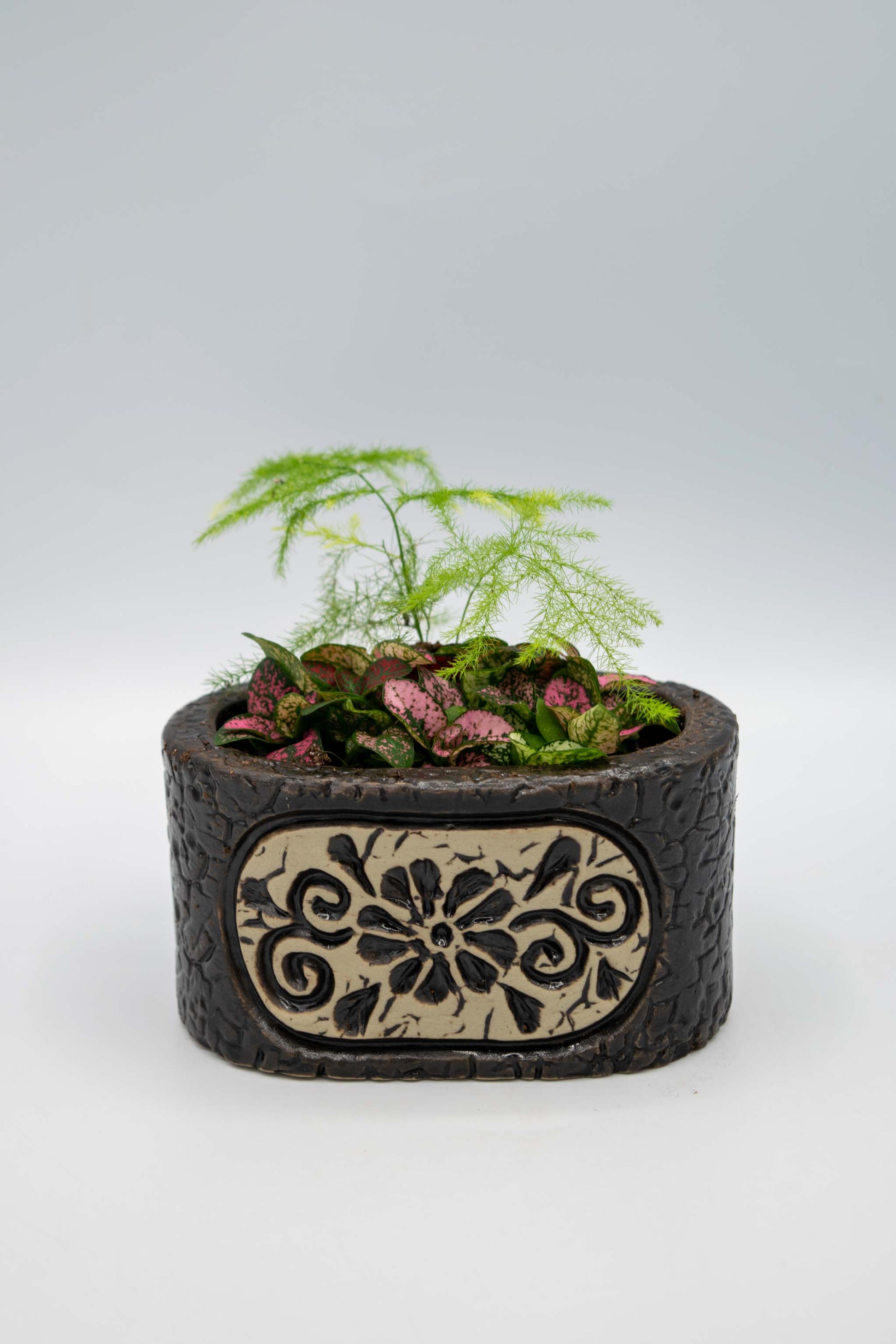 Ceramic Oval Floral Planter from Taiwan potted with a low maintenance house plant of your choice. All our plant selections are great for the office, outdoor in the shade, or indoor bright area.