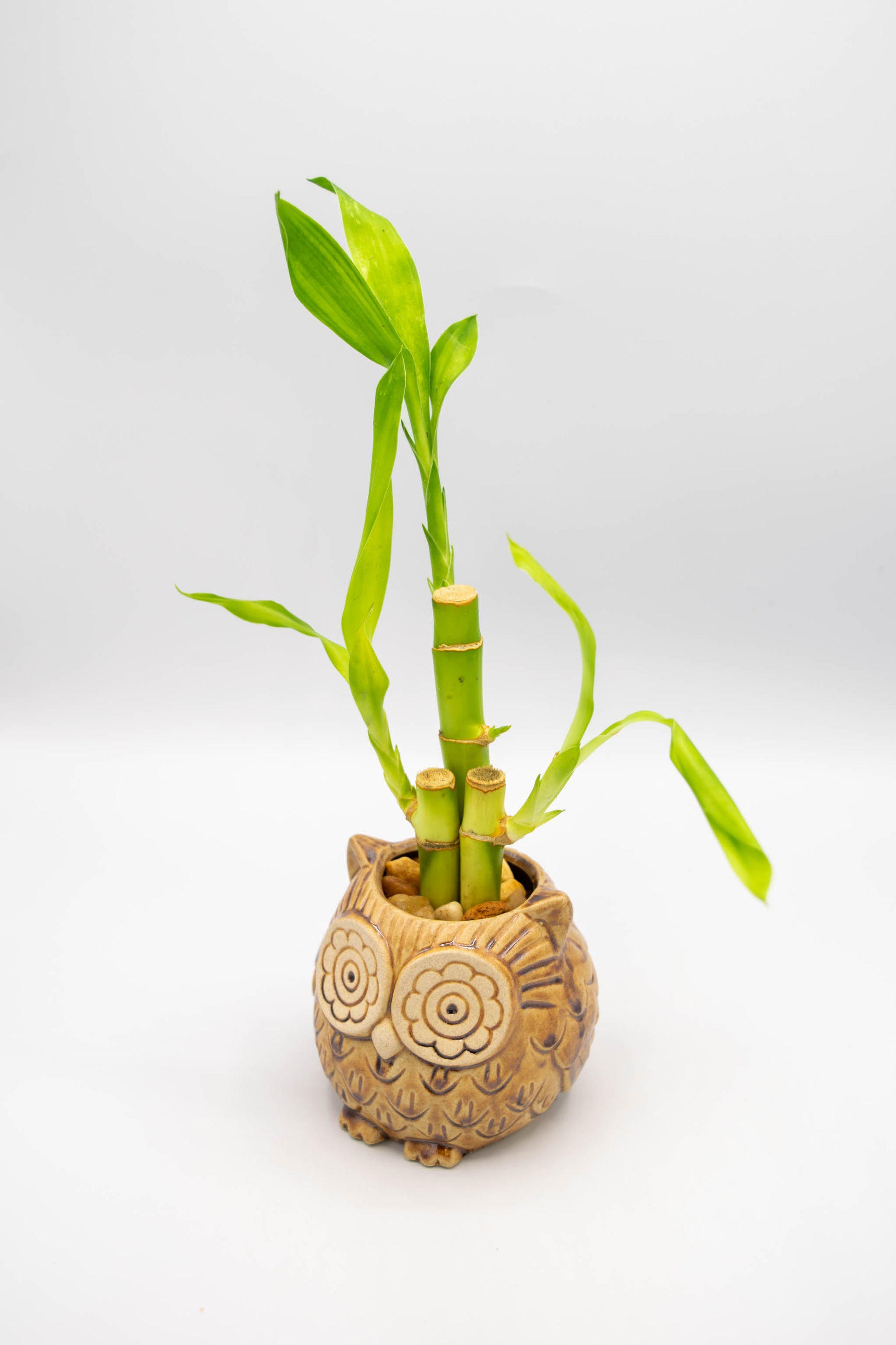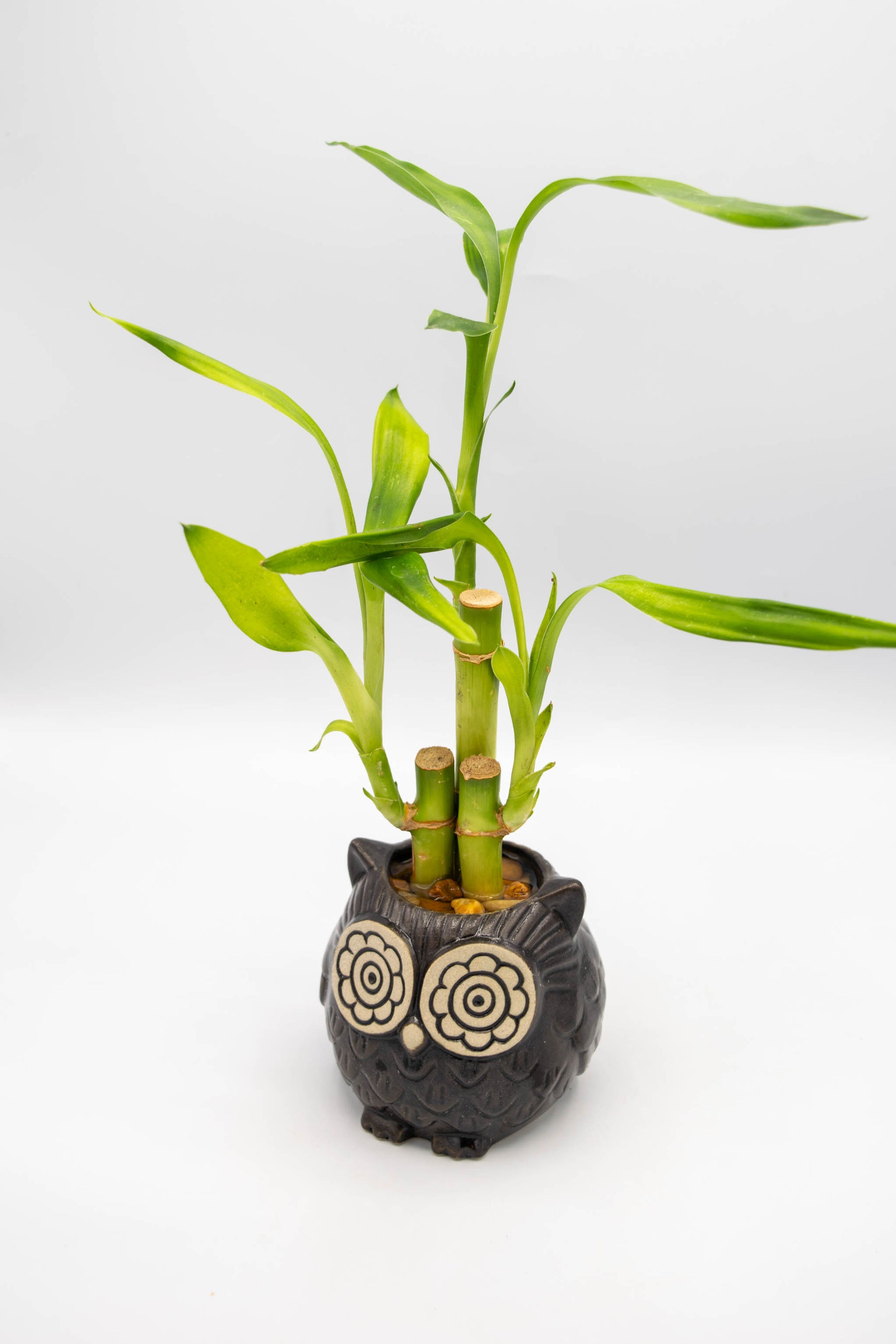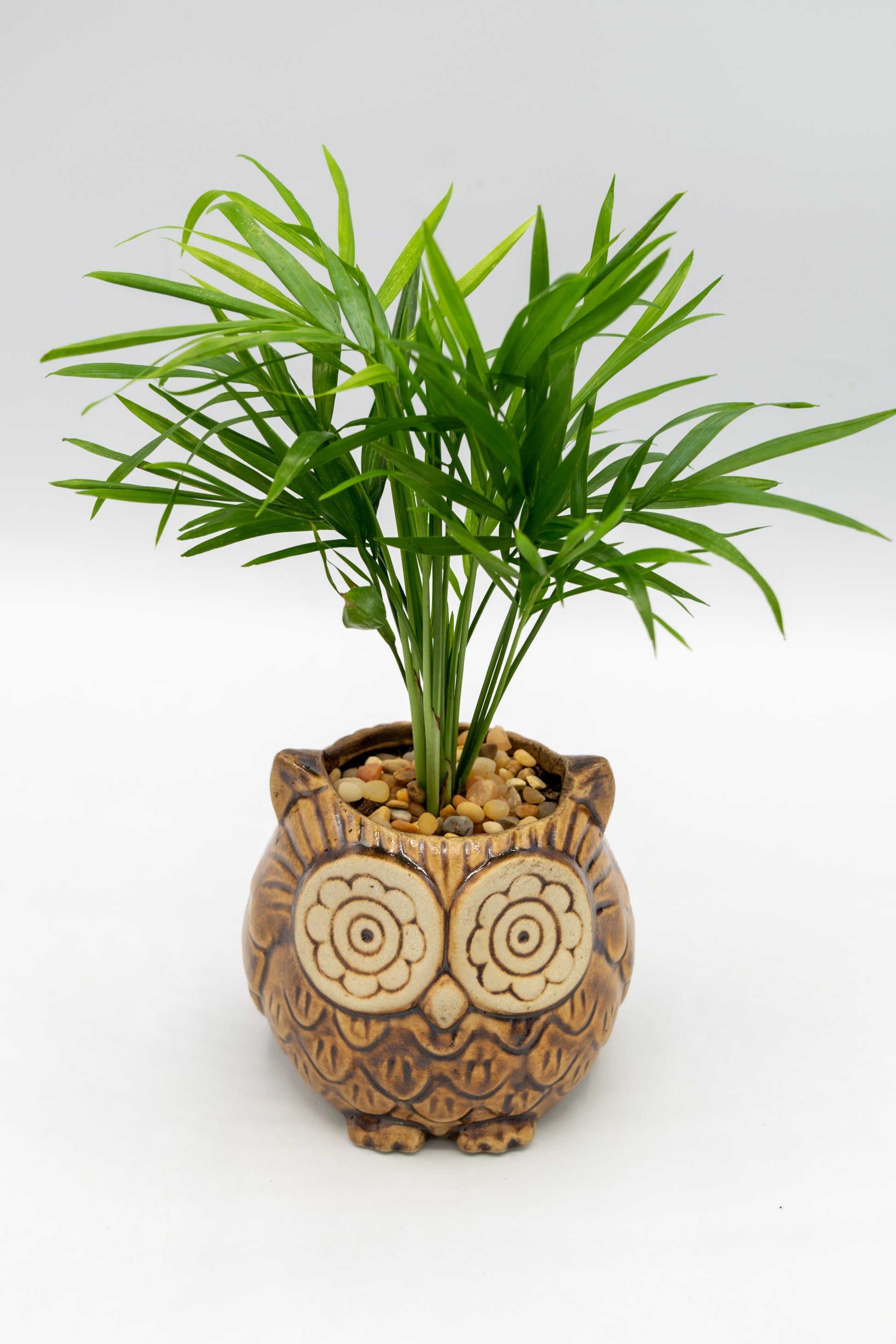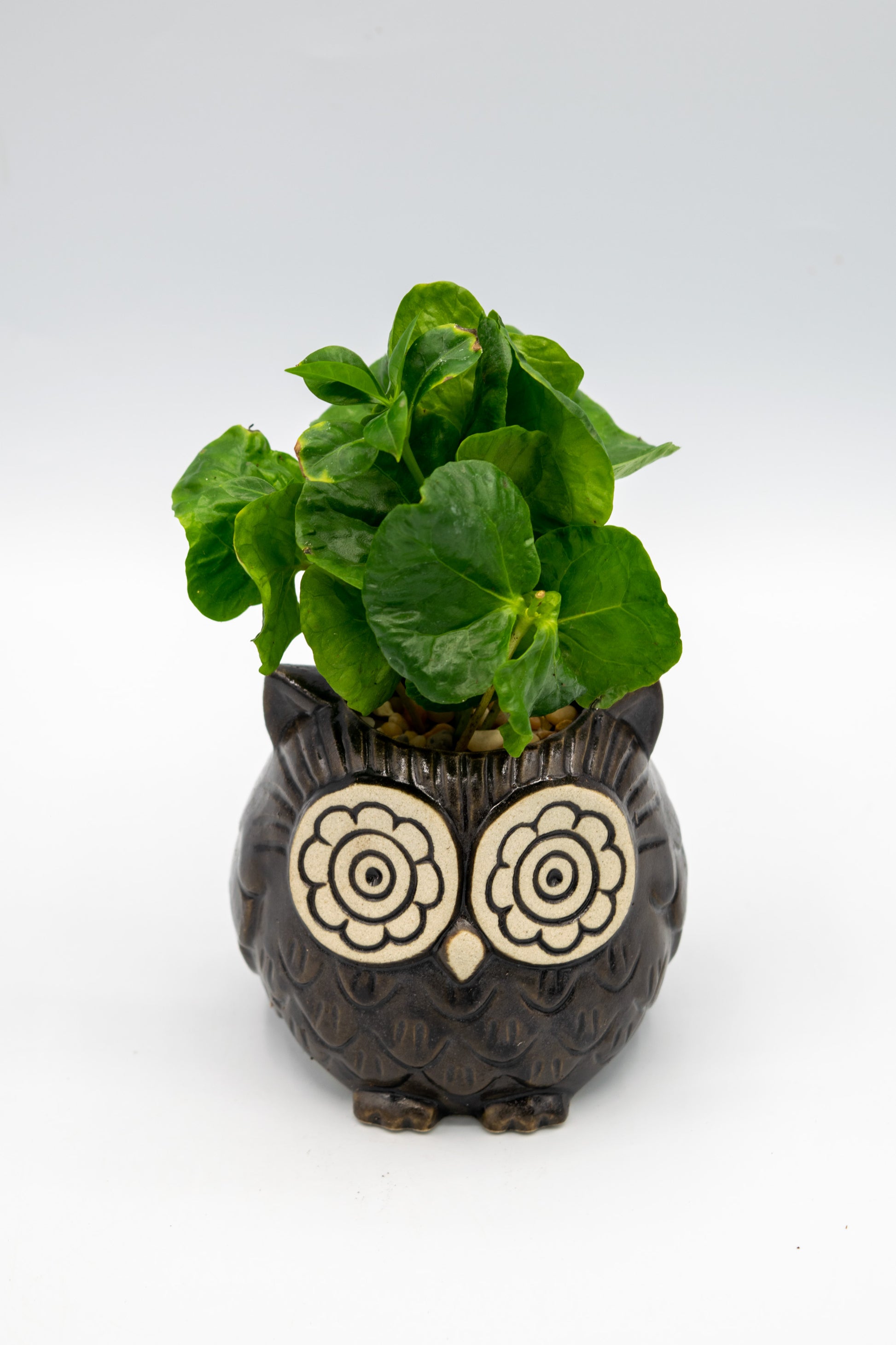 Owl Planters from Taiwan potted with a low maintenance house plant of your choice. All our plant selections are great for the office, outdoor in the shade, or indoor bright area.