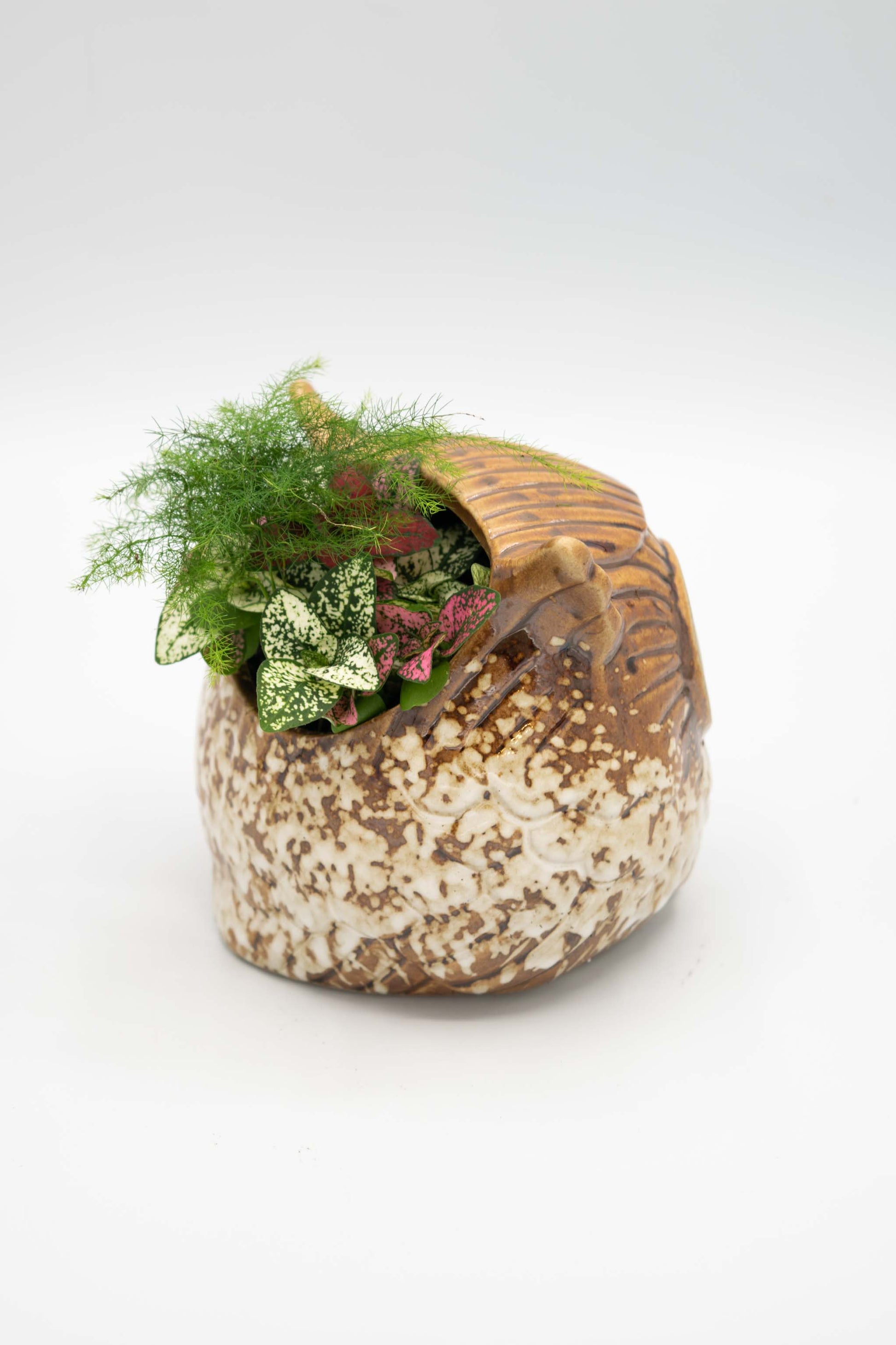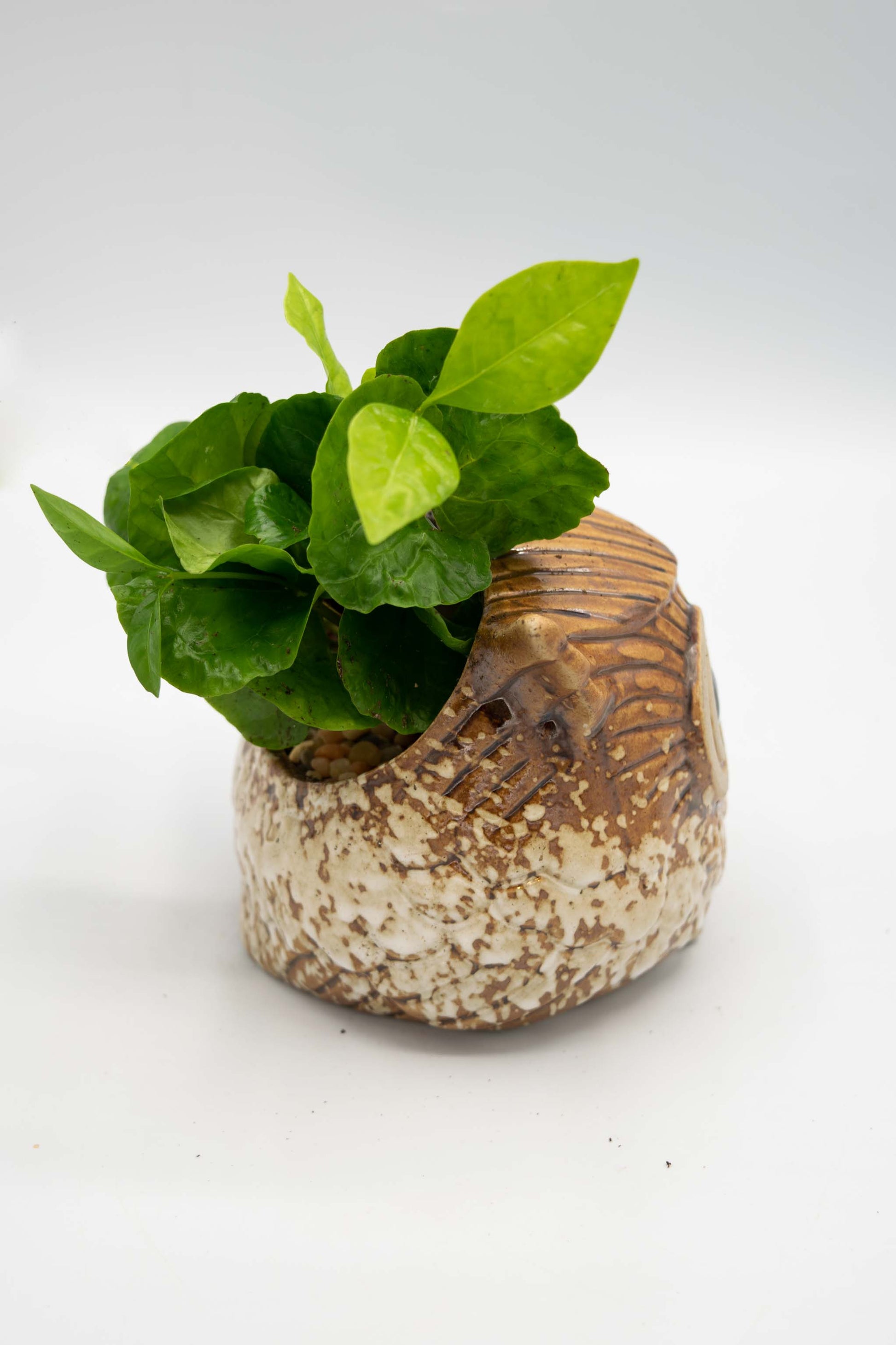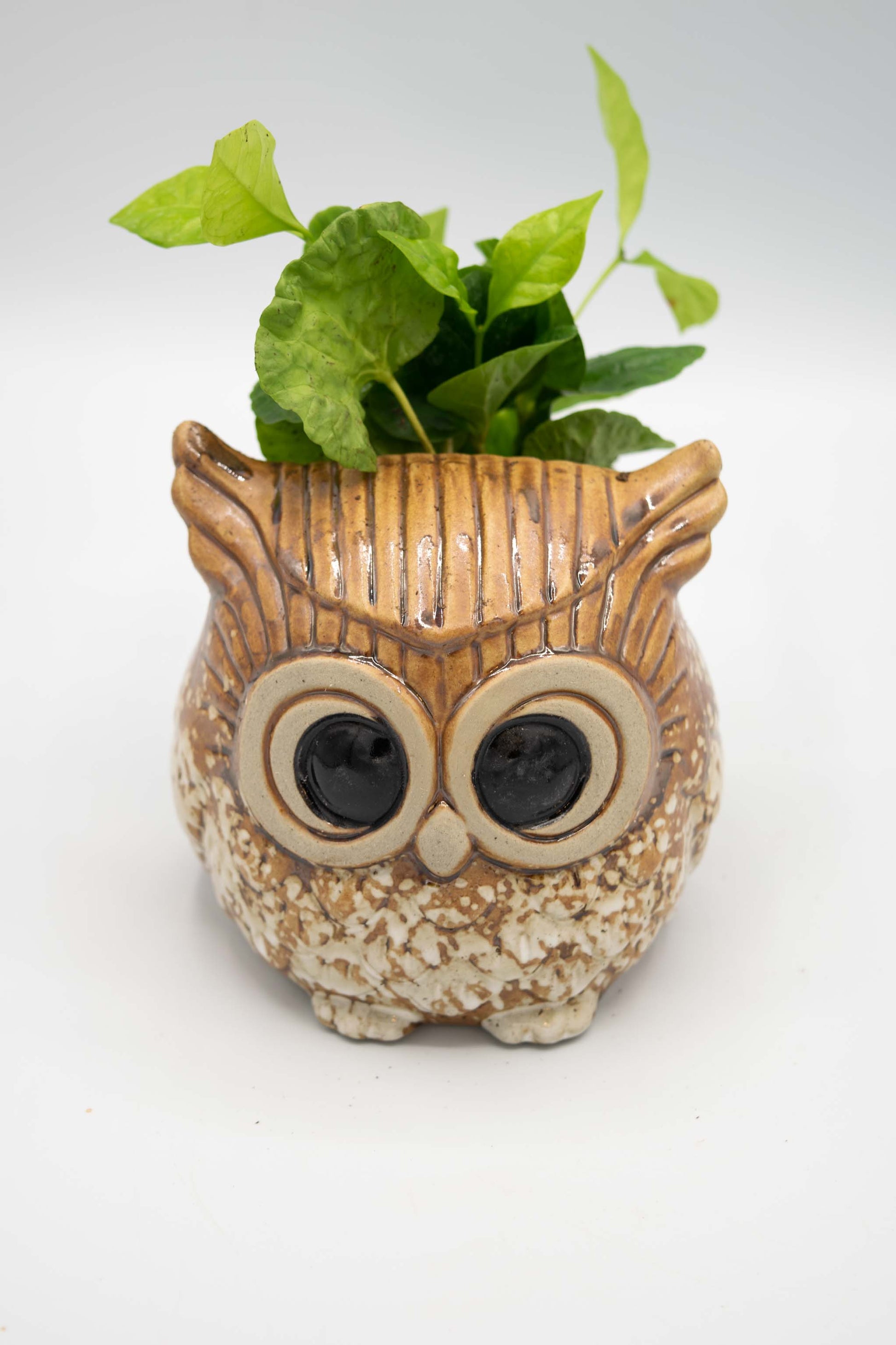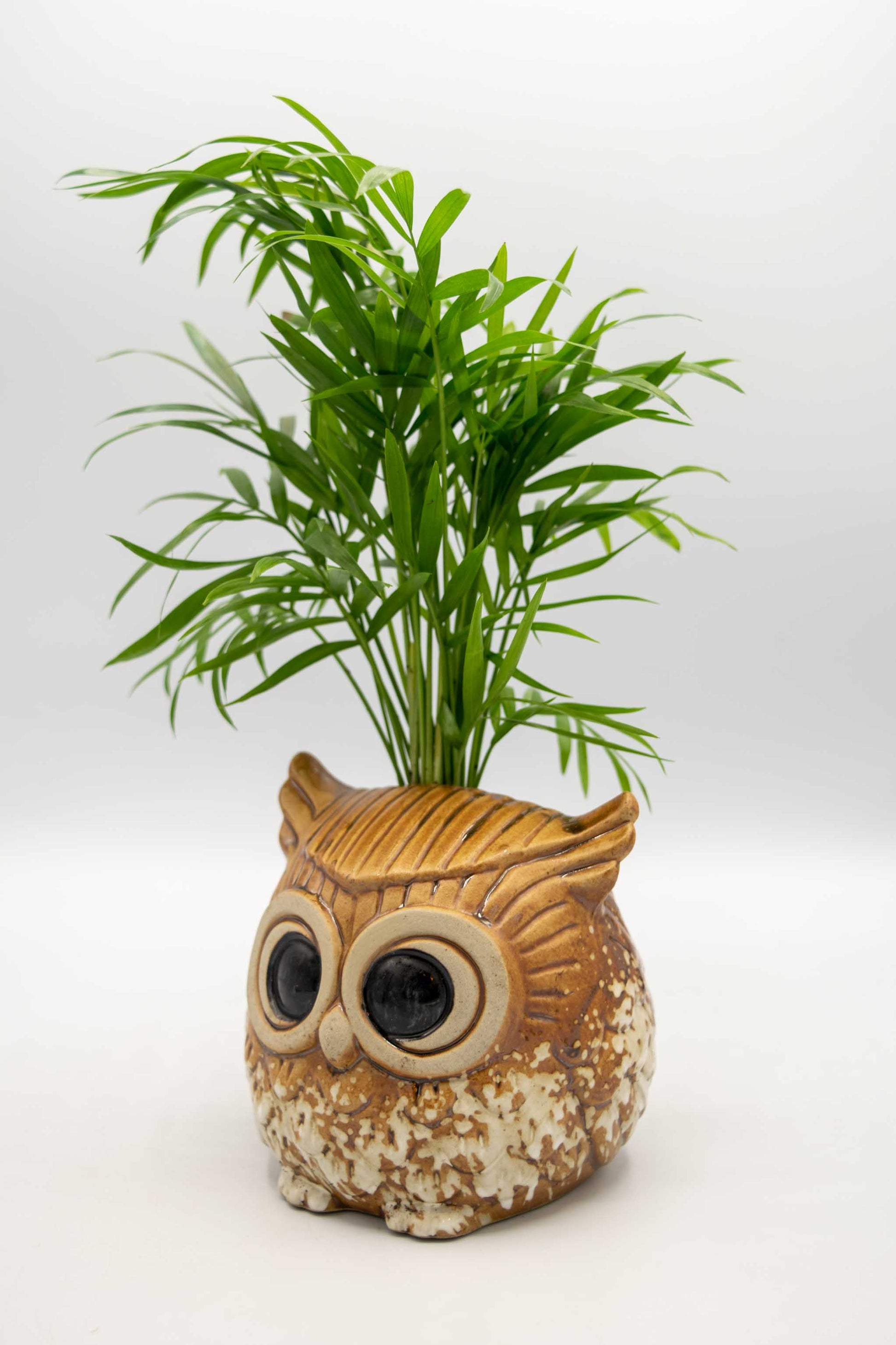 Owl Planter from Taiwan potted with a low maintenance house plant of your choice. All our plant selections are great for the office, outdoor in the shade, or indoor bright area.