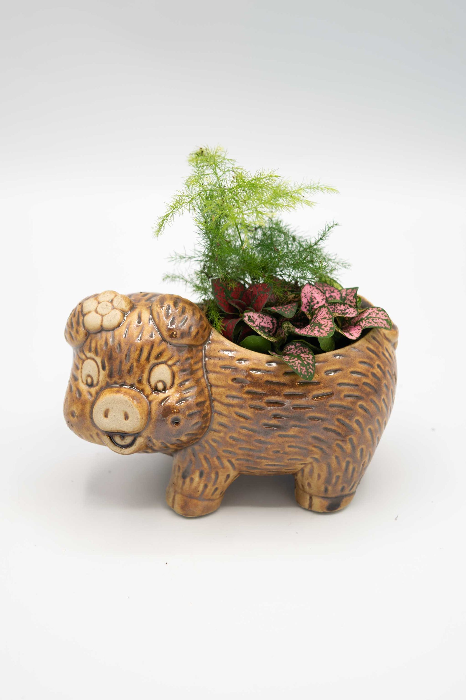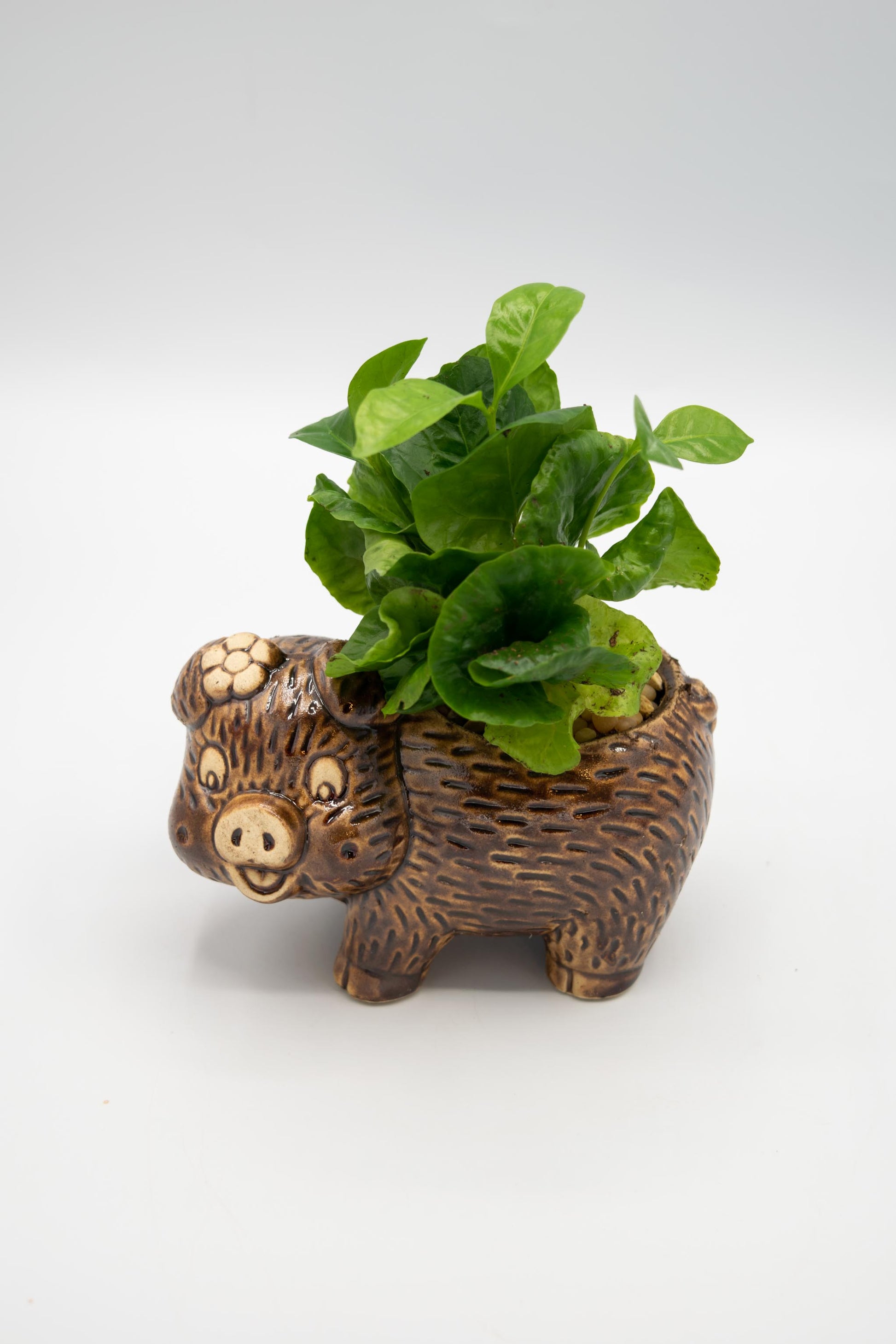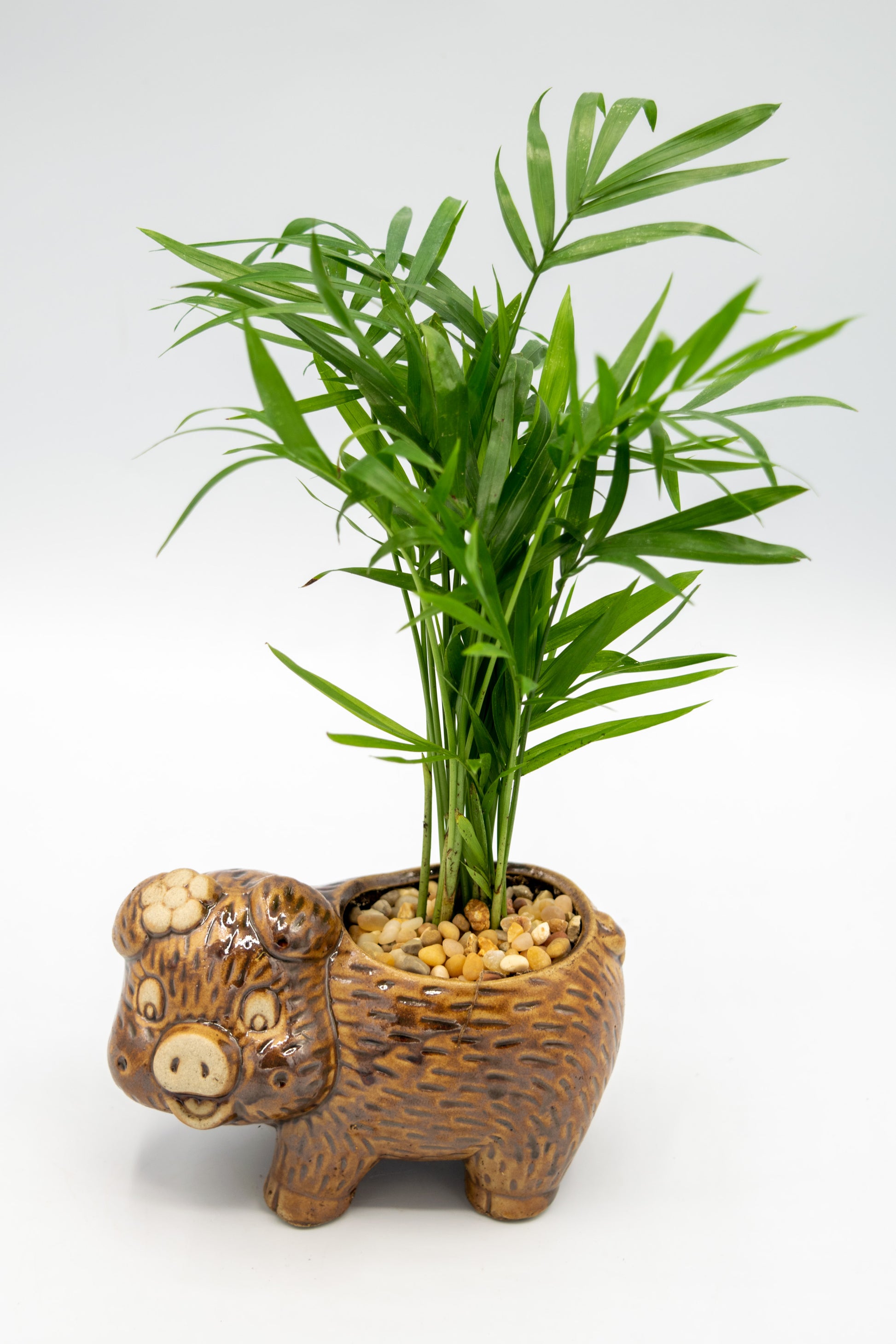 Pig Planters from Taiwan potted with a low maintenance house plant of your choice. All our plant selections are great for the office, outdoor in the shade, or indoor bright area.