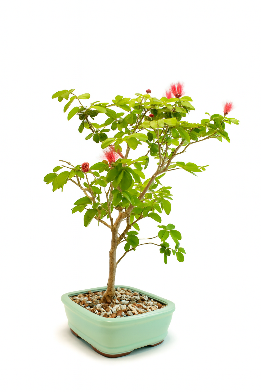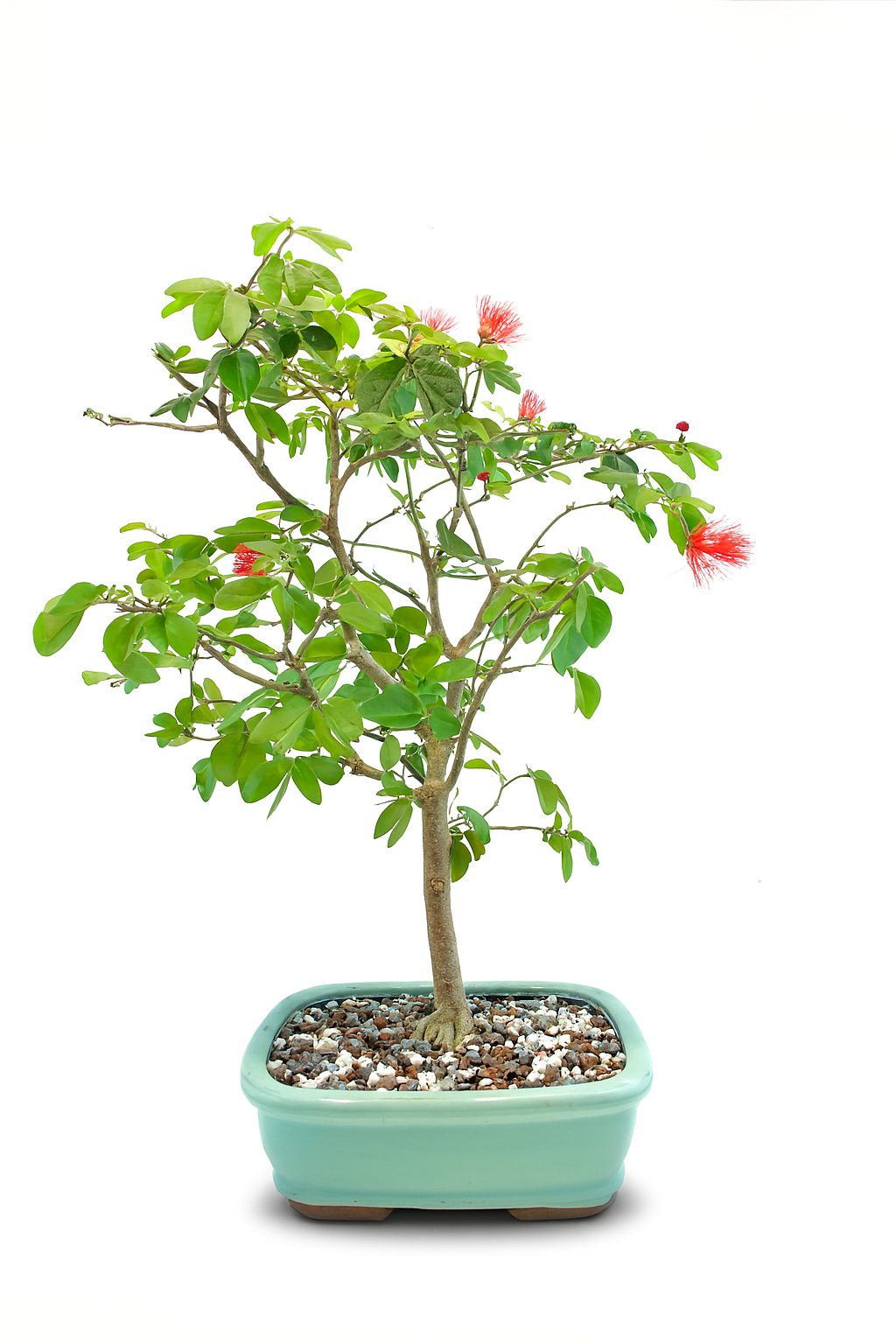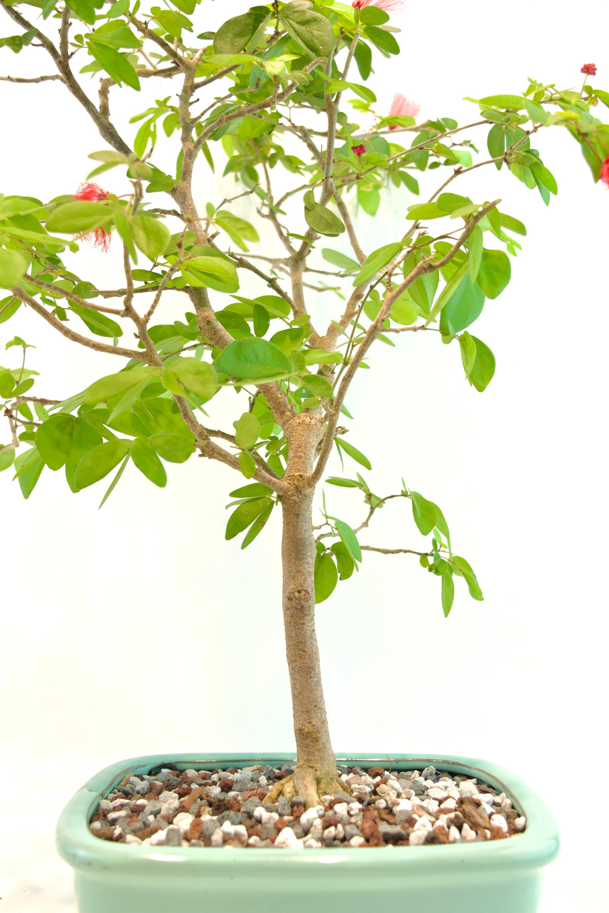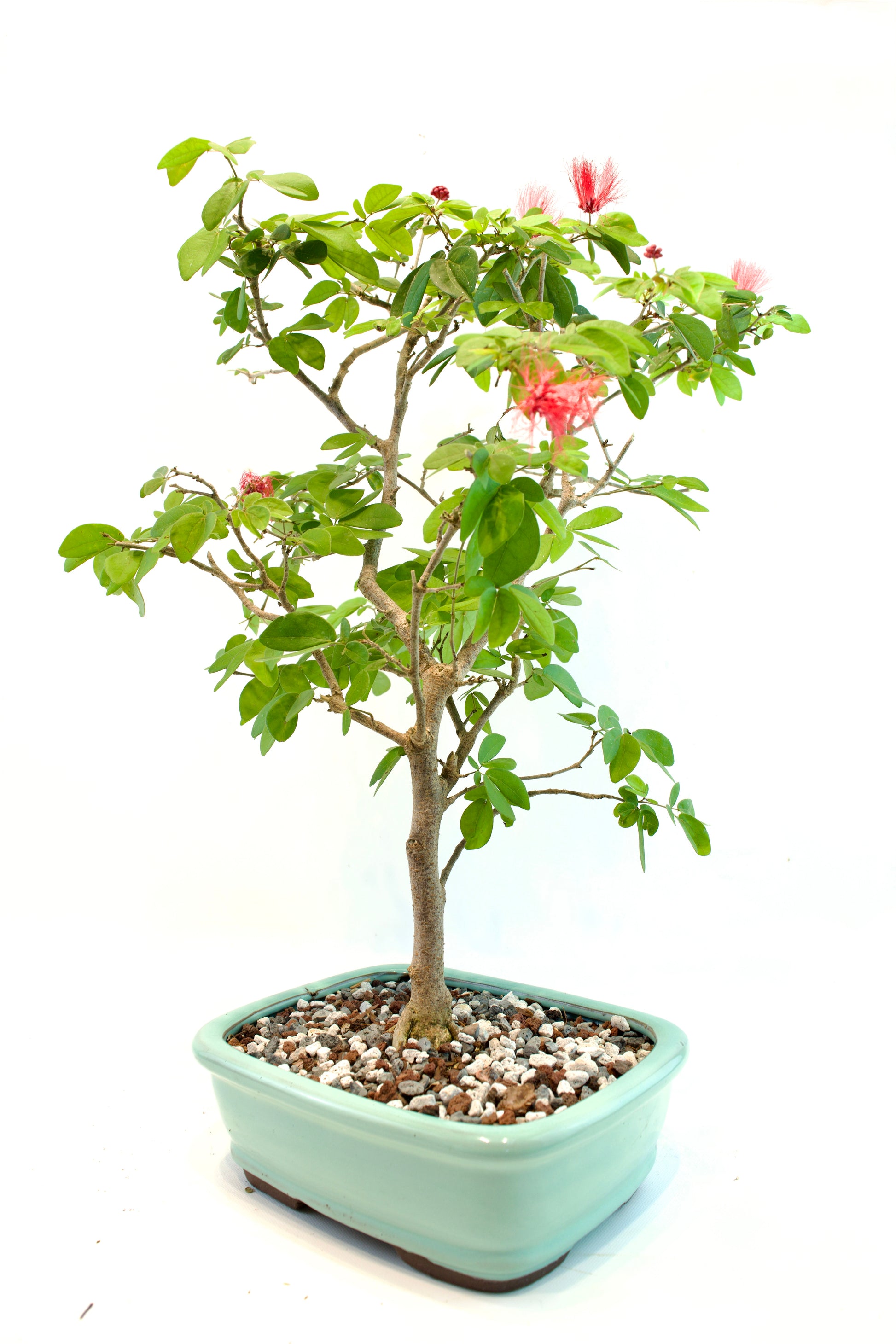 Red Powderpuff Bonsai 8" Pot - One of a Kind Bonsai