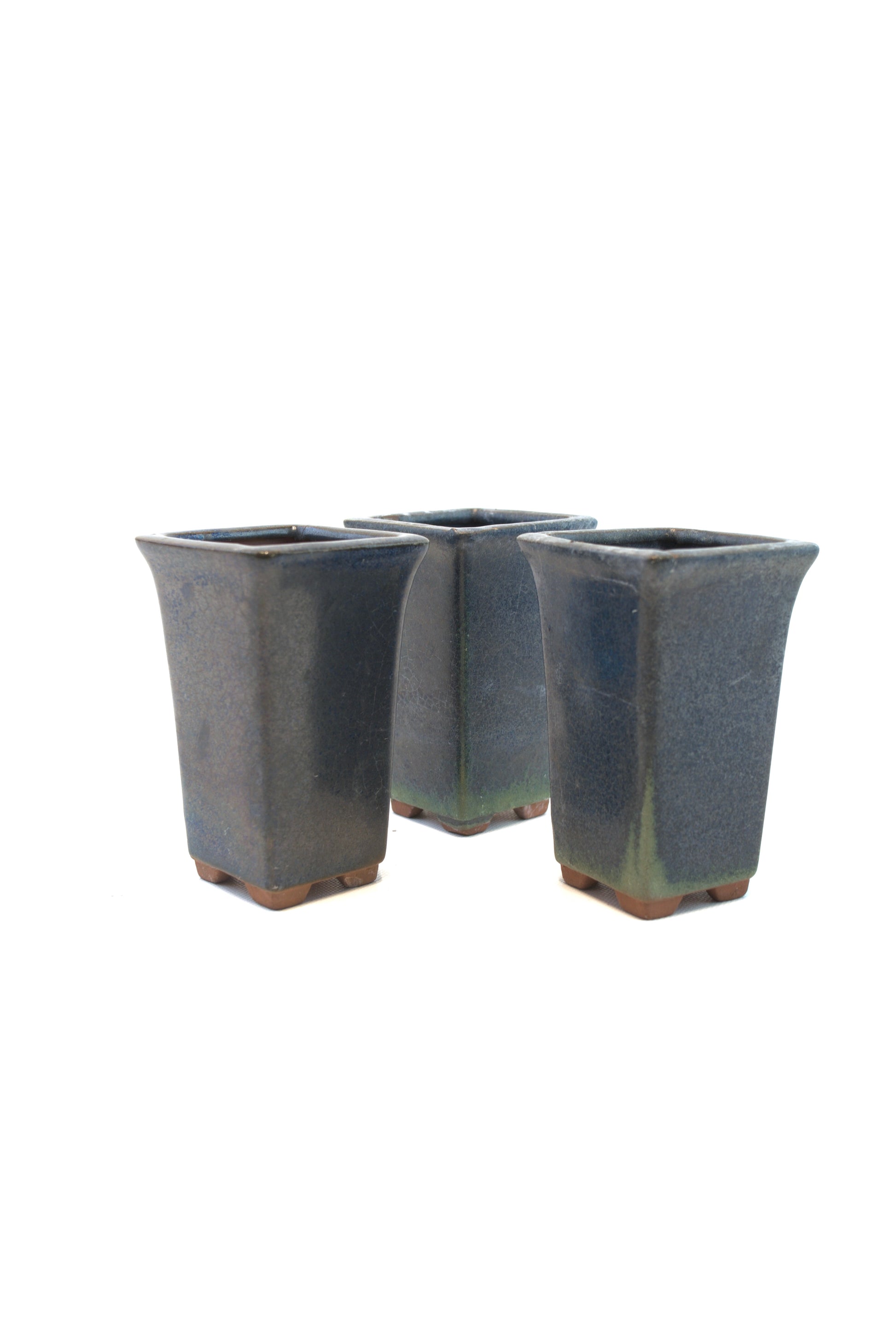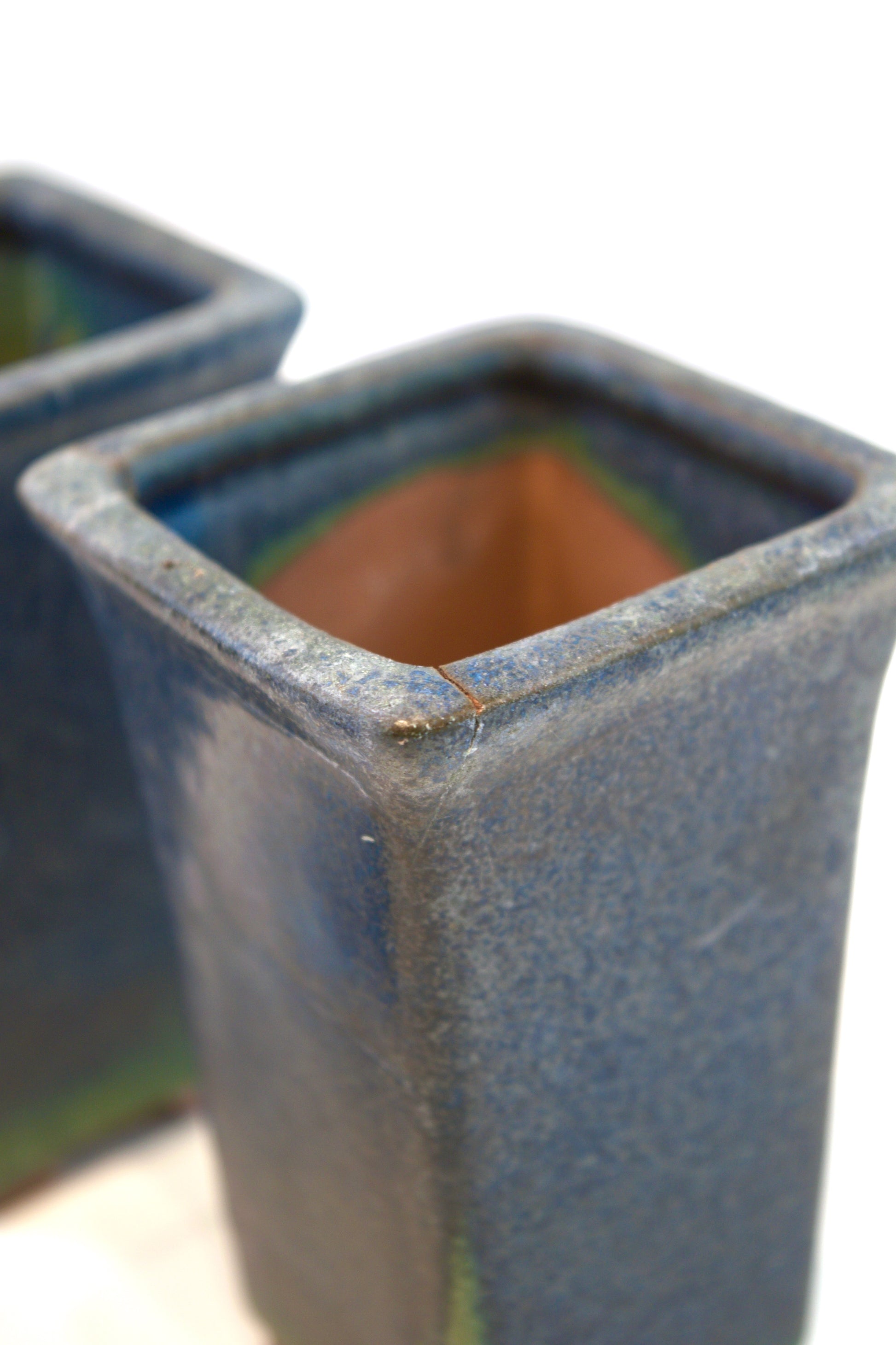 These B-Grade ceramic pots have plenty of character—perfect for plant lovers who appreciate a unique, rustic charm. Originally a deep blue, the glaze has naturally weathered from sun exposure, creating beautiful greenish tones and subtle variations. Some pots have mineral marks from water and even small hairline cracks, but all remain fully functional for planting and display.