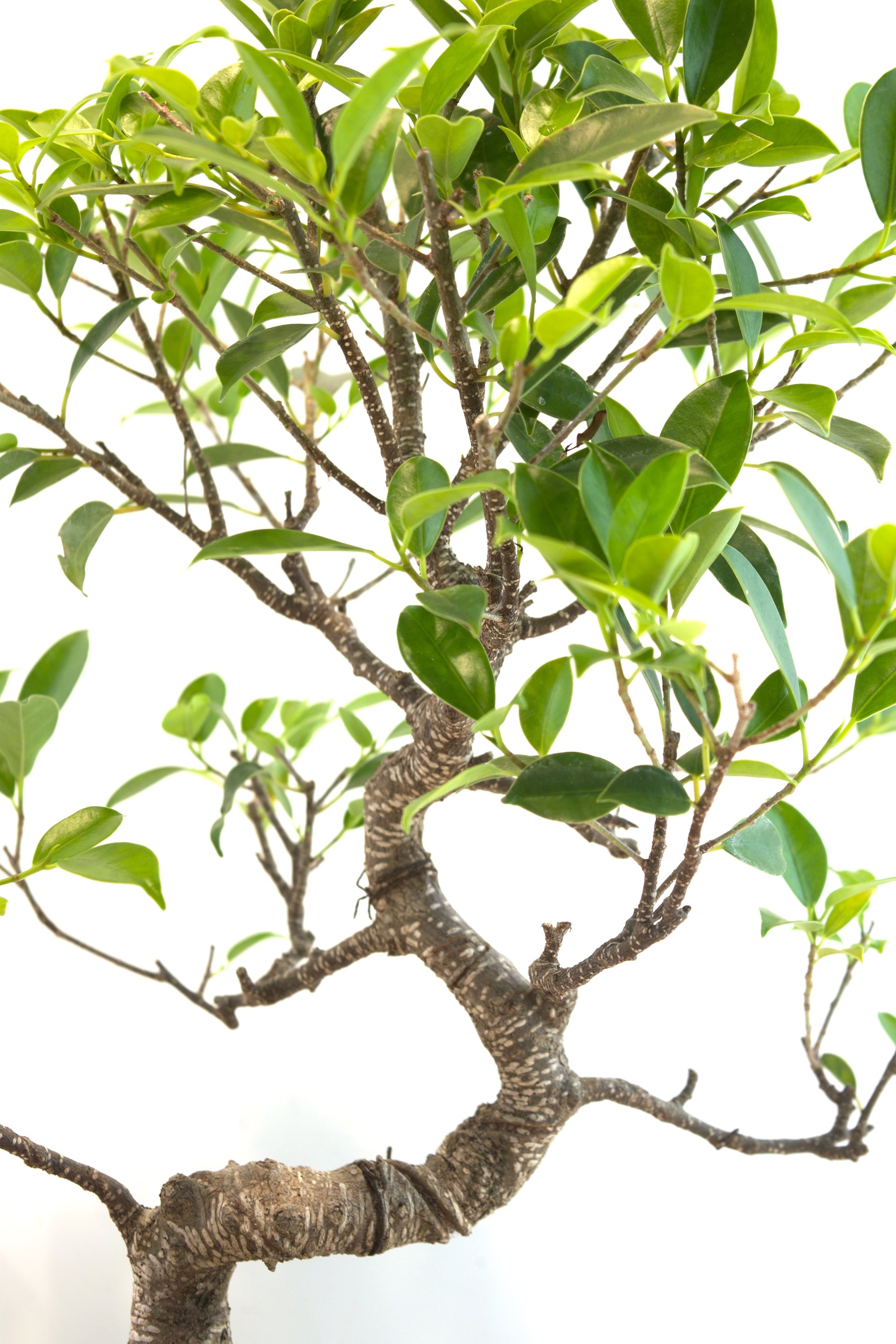 Tiger Bark Ficus is an evergreen tropical species of fig. Some figs can become very large trees with a crown circumference of more than 300 m (1000 ft). Typical for all fig Bonsai species is their milky latex sap, which will leak from wounds or cuts.