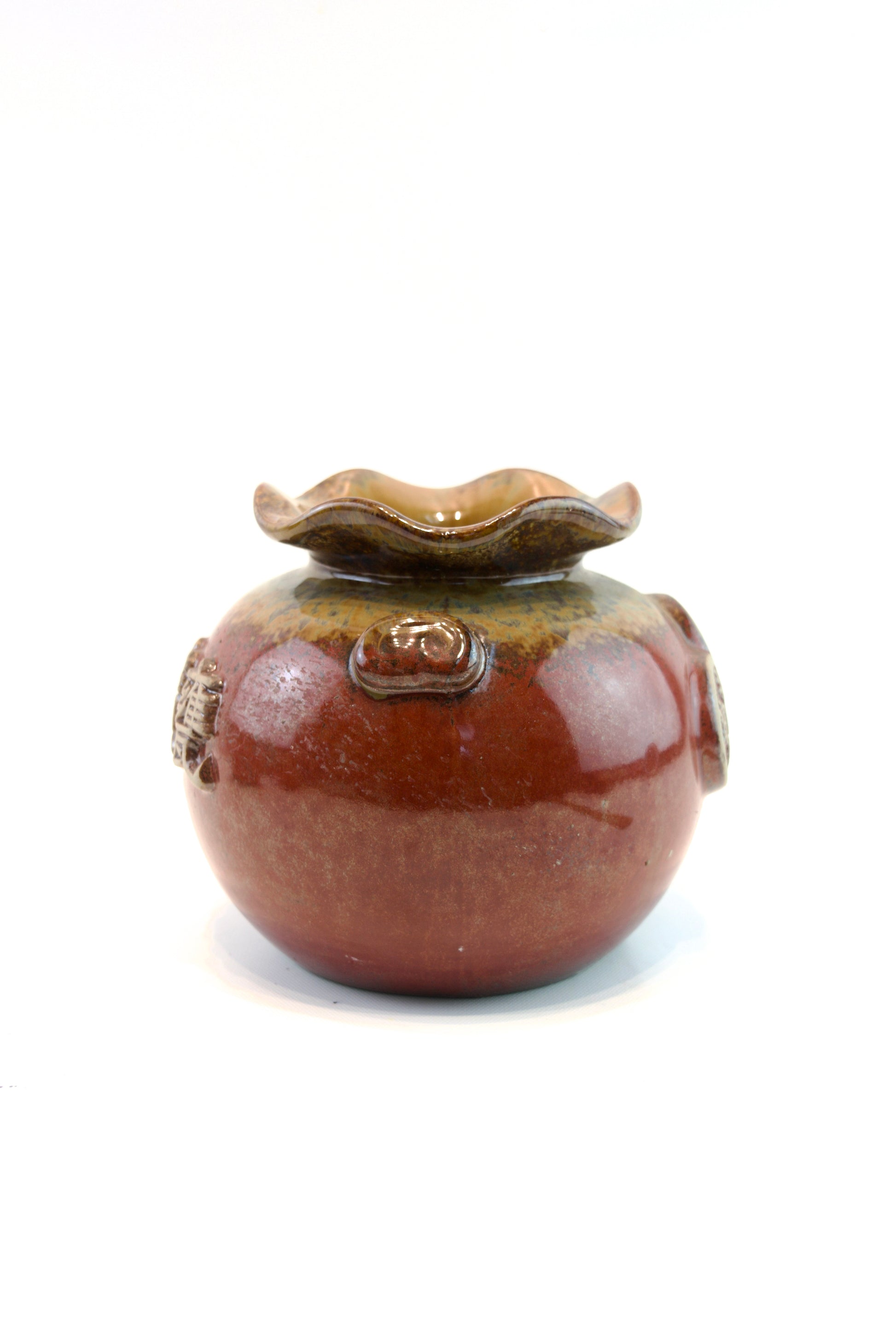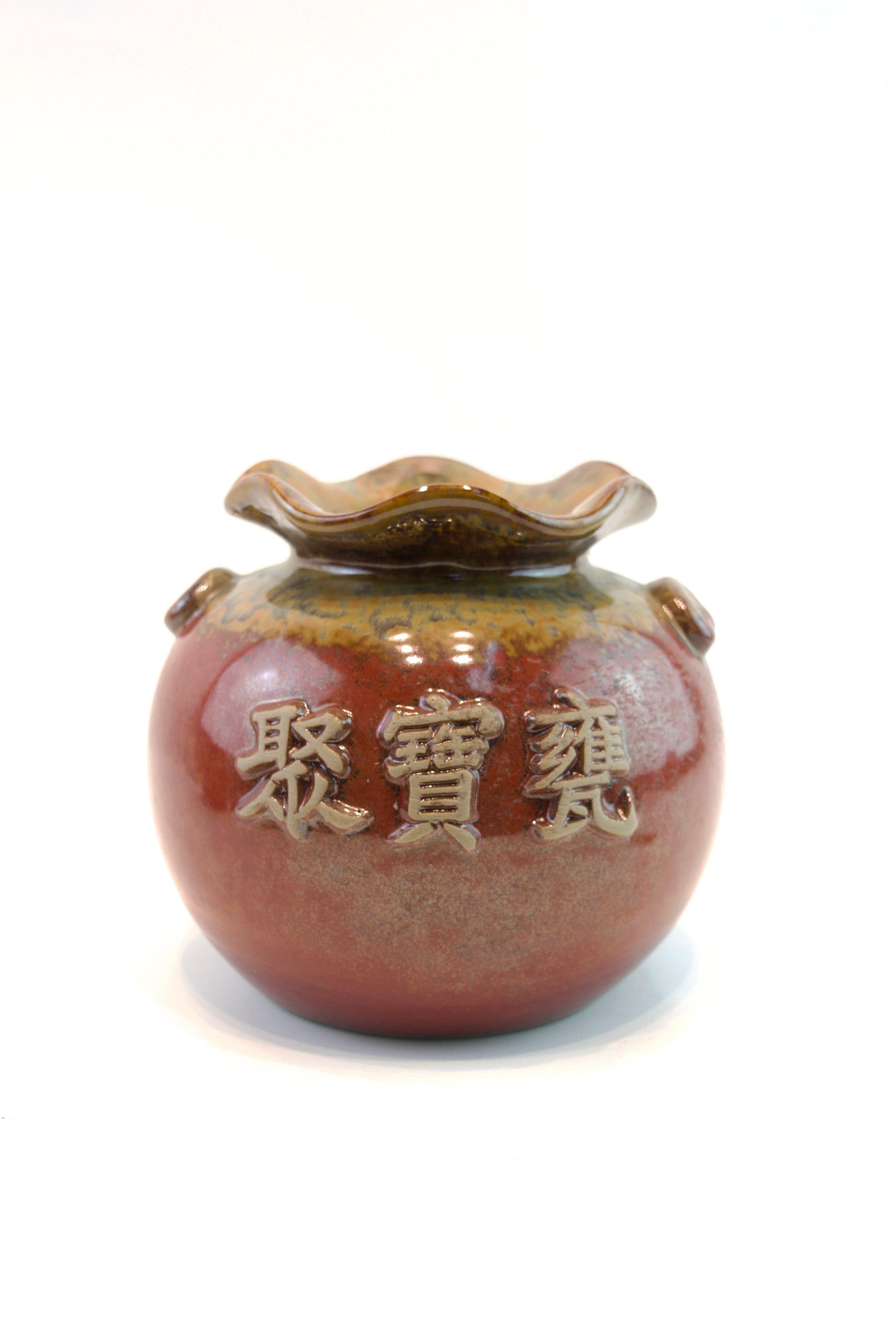Bring a touch of heritage and elegance to your plant display with our Chinese Treasure Urn Planter, a beautifully glazed ceramic piece inspired by traditional Chinese pottery. Each pot features bold etched characters on the front and a rich, hand-finished glaze in earthy tones of red, amber, and indigo.