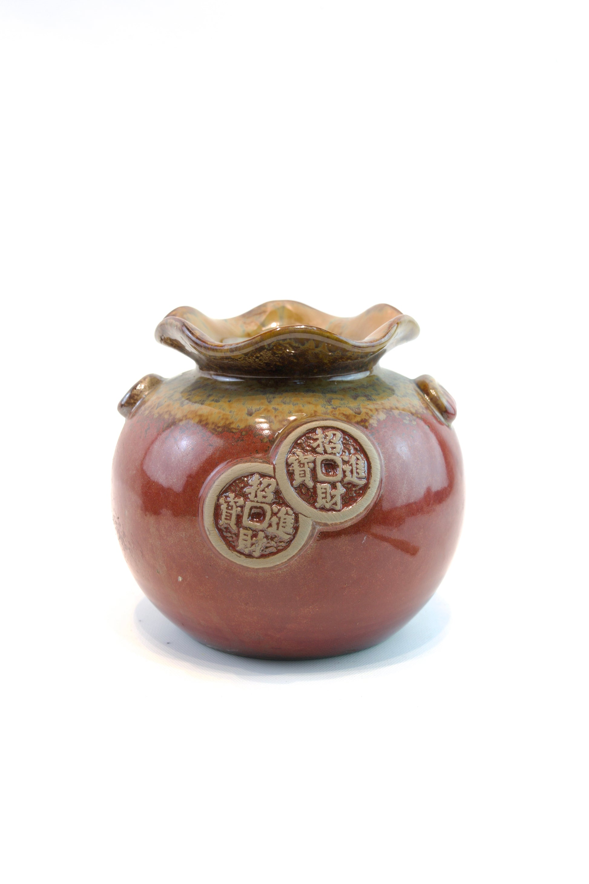 This bold, glossy urn-style planter features traditional Chinese characters and a warm two-tone glaze. Available in 3 sizes, it’s perfect for bonsai, lucky bamboo, or houseplants with character.