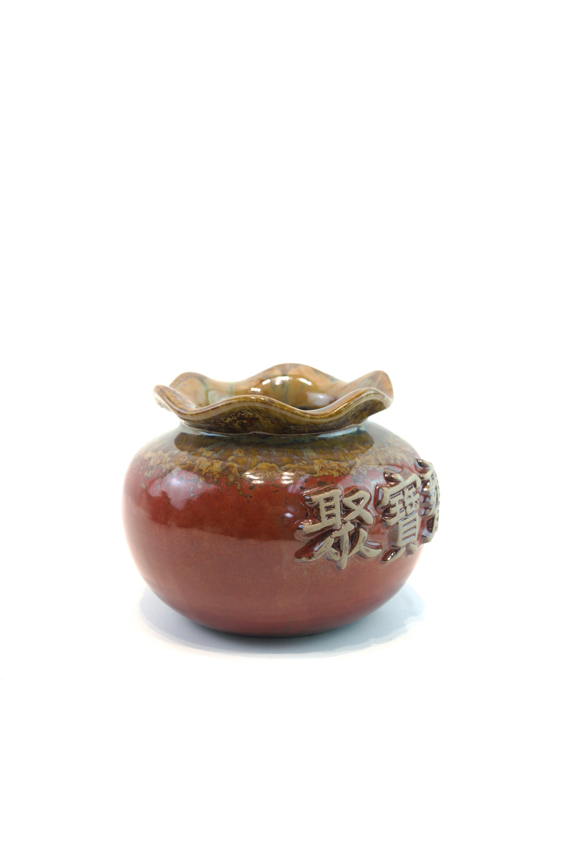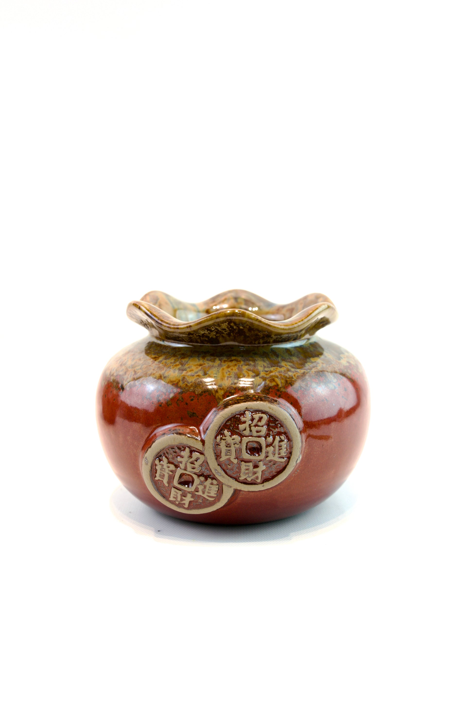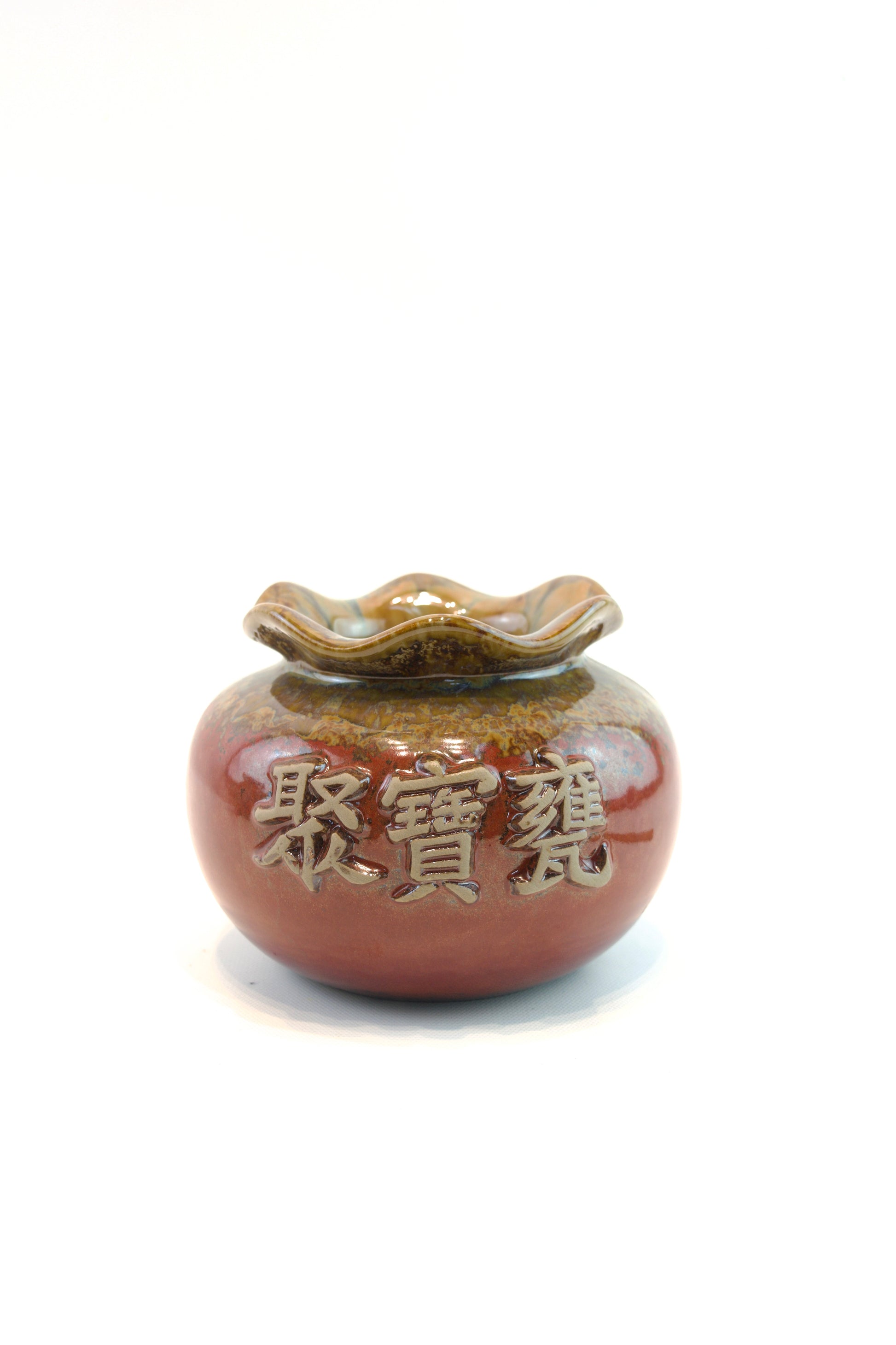 Bring a touch of heritage and elegance to your plant display with our Chinese Treasure Urn Planter, a beautifully glazed ceramic piece inspired by traditional Chinese pottery. Each pot features bold etched characters on the front and a rich, hand-finished glaze in earthy tones of red, amber, and indigo.